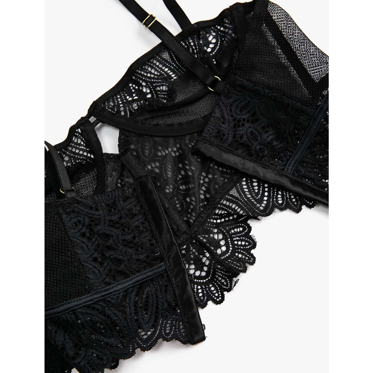 Kadın İç Giyim Dantelli Bralet Balenli Dolgusuz Kapsız Ayarlanabilir Askılı 3WLK10050MK Siyah
