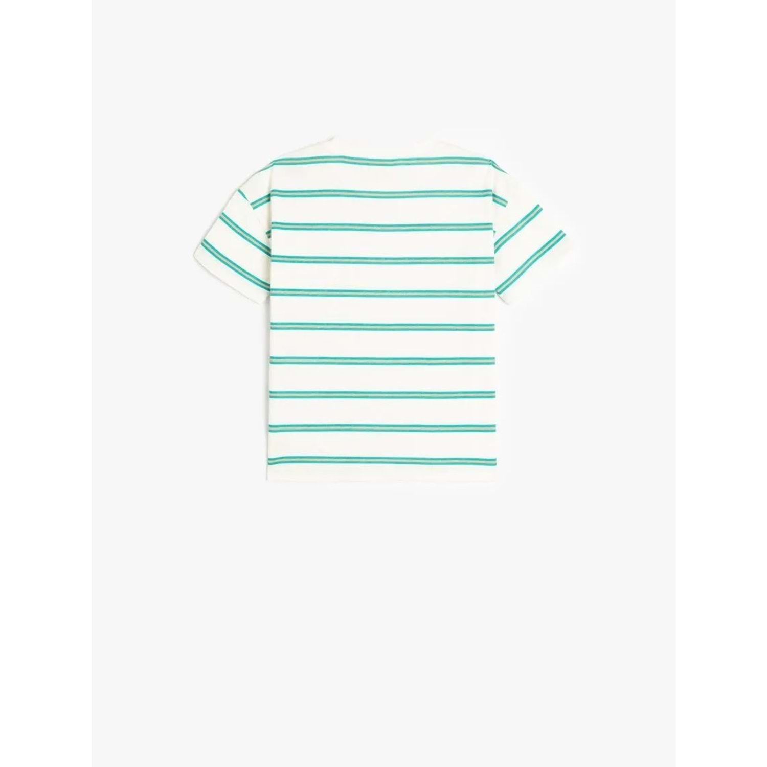 Erkek Bebek Bisiklet Yaka Kısa Kollu Pamuklu Çizgili Tişört 5SMB10014TK - KOTON - EKRU - 3-4 YAŞ