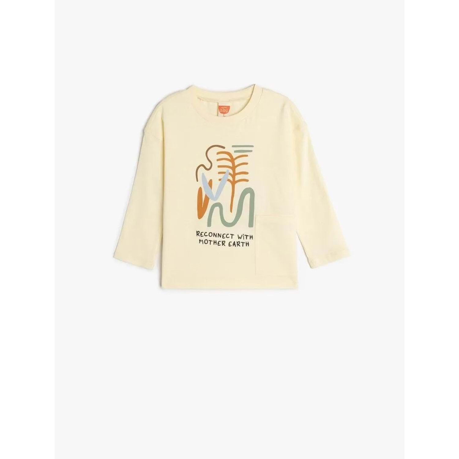 Erkek Bebek Pamuklu Baskı Detaylı Uzun Kollu Tişört 5SMB10179TK - KOTON - EKRU - 4-5 YAŞ