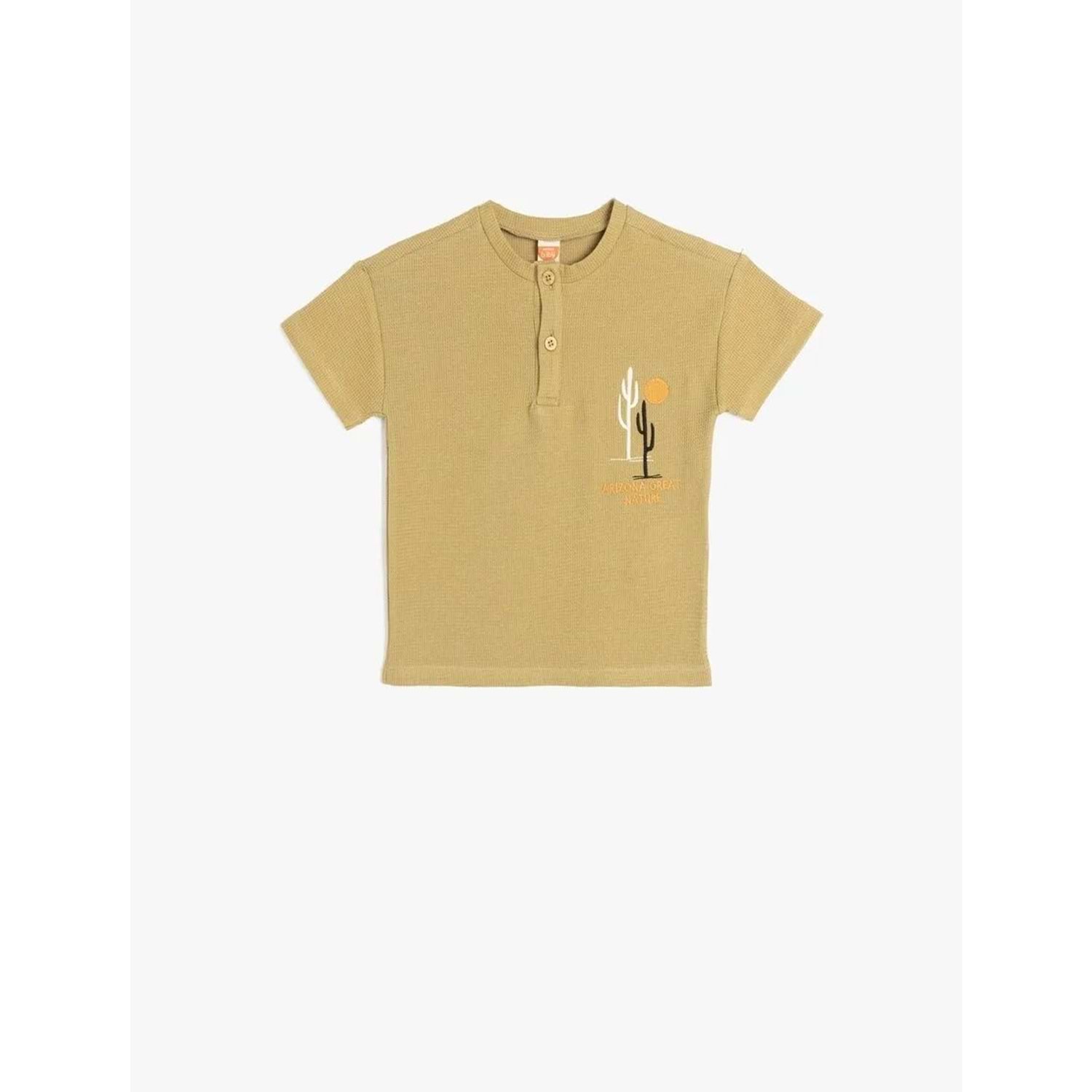 Erkek Bebek Pamuklu Kaktüs Nakış Detaylı Dokulu Tişört 5SMB10104TK - KOTON - HAKİ - 18-24 AY