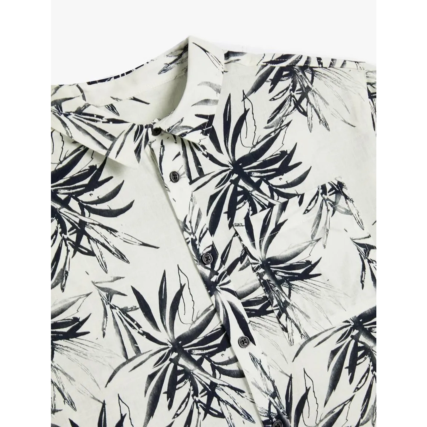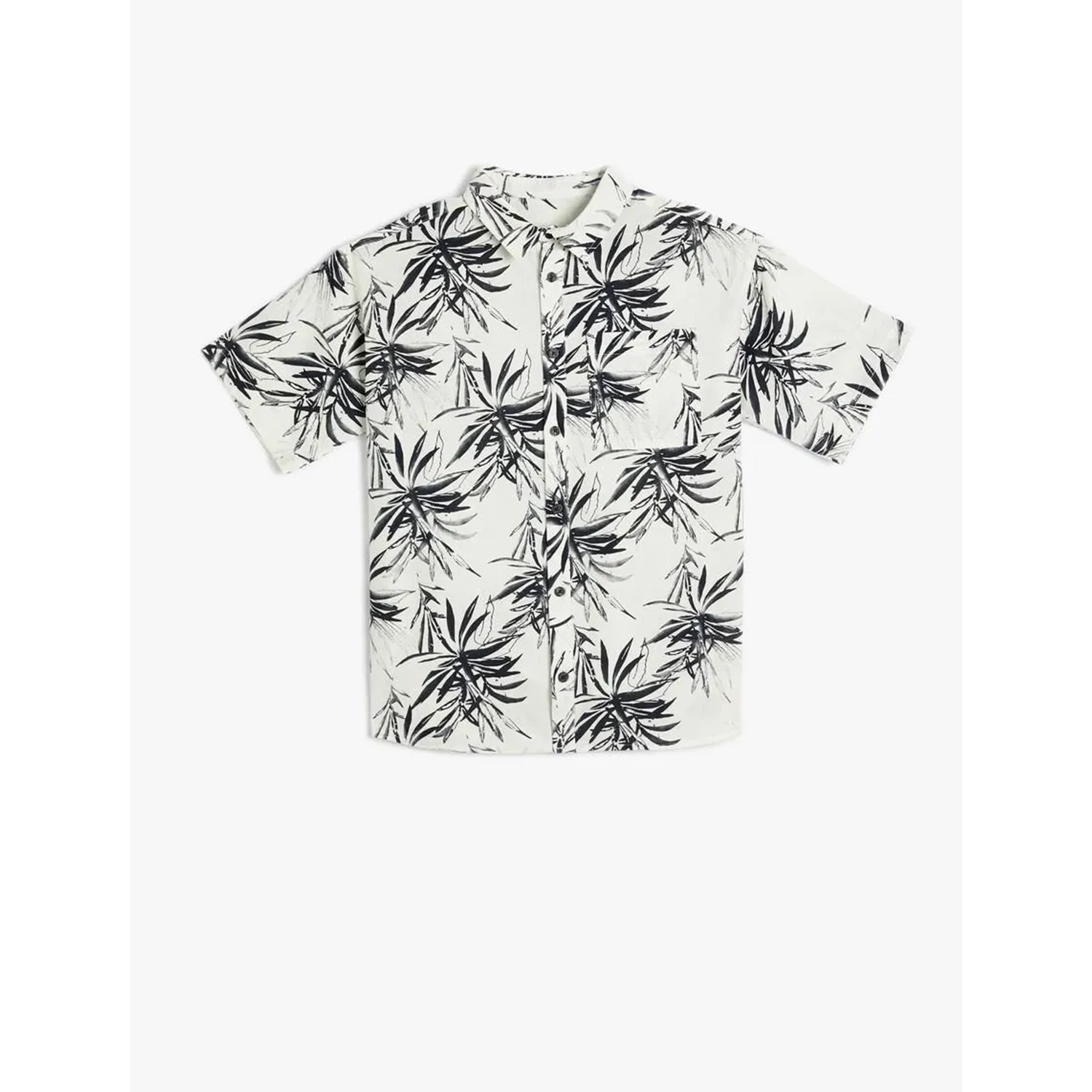 Erkek Çocuk Gömlek Yaprak Baskılı Kısa Kollu Cepli - KOTON - 4SKB60071TW - EKRU DESENLİ - 5-6 YAŞ