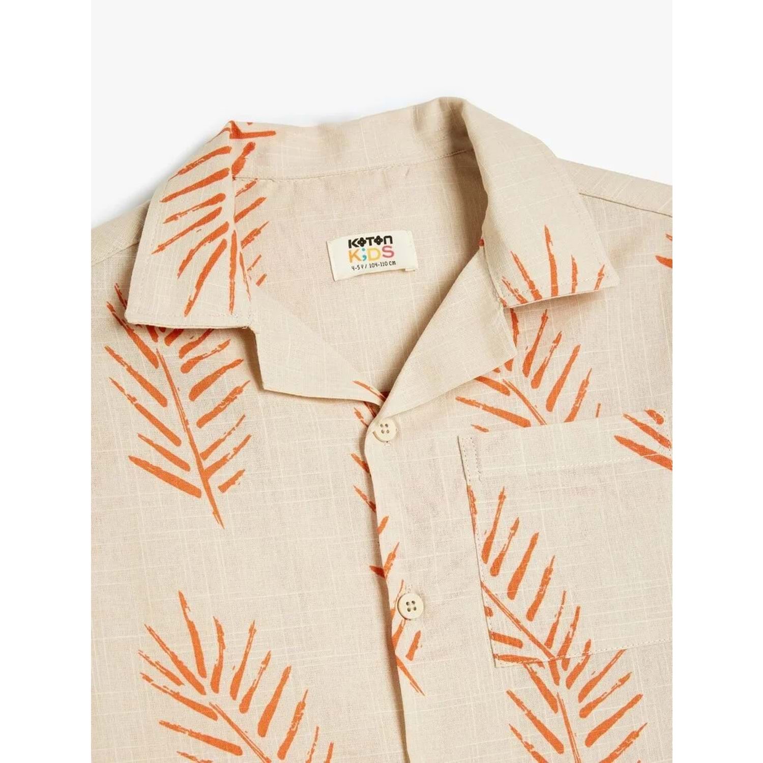 Erkek Çocuk Pamuklu Kısa Kollu Yaprak Desenli Gömlek 5SKB60074TW - KOTON - EKRU - 7-8 YAŞ