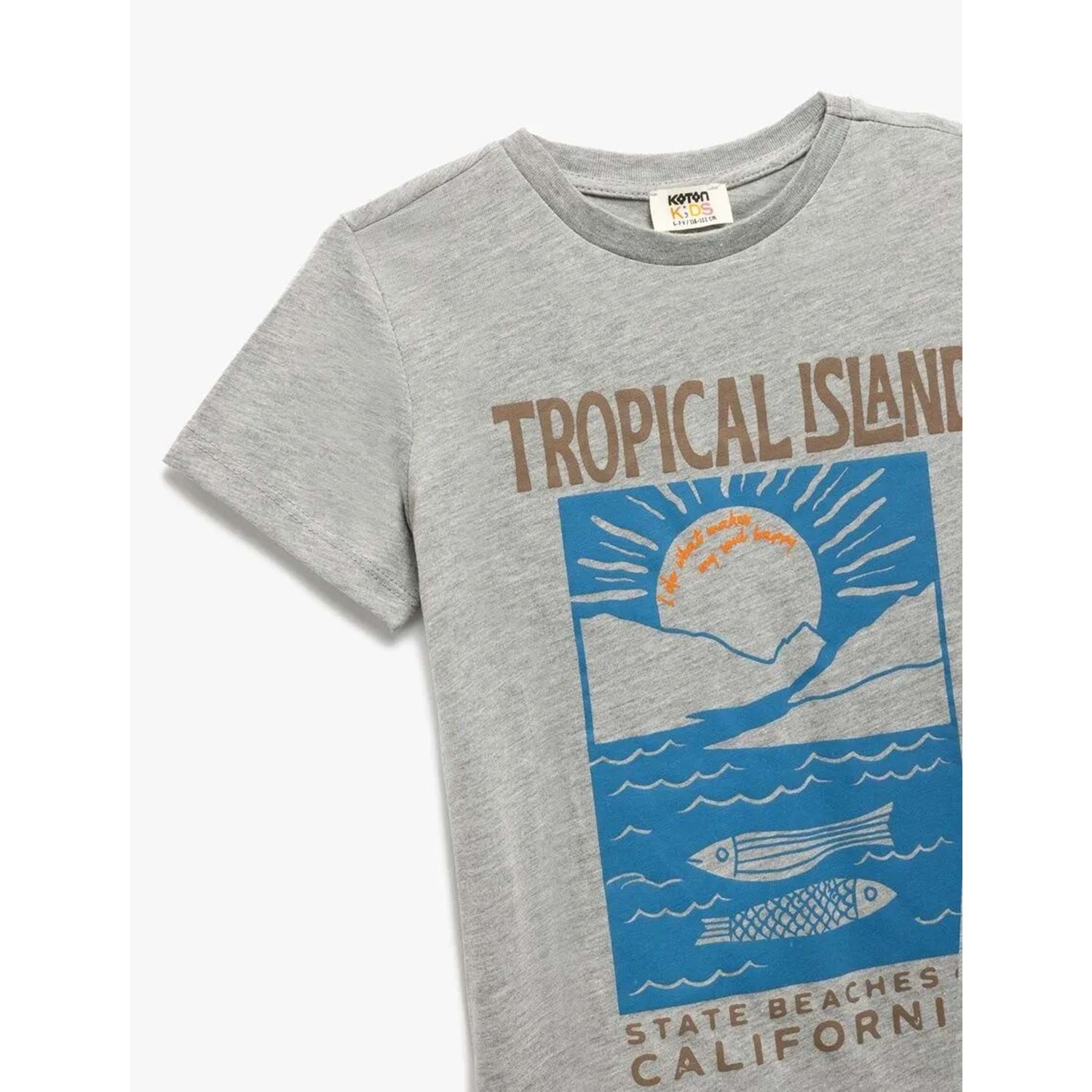 Erkek Çocuk Baskılı Bisiklet Yaka Kısa Kollu Tişört 5SKB10564TK - KOTON - GRİ - 9-10 YAŞ