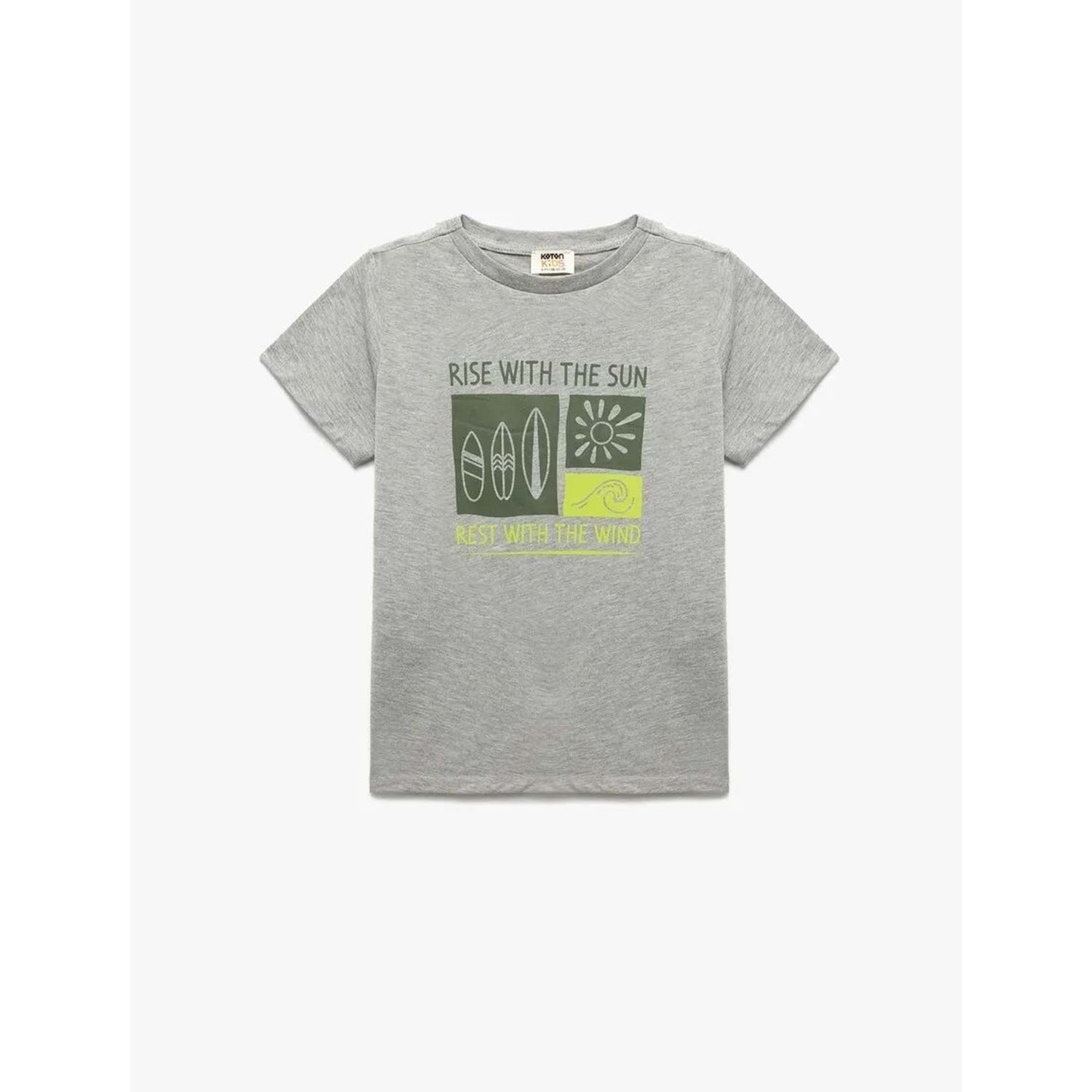 Erkek Çocuk Baskılı Kısa Kollu Yuvarlak Yaka Pamuklu Tişört 5SKB10560TK - KOTON - GRİ - 5-6 YAŞ