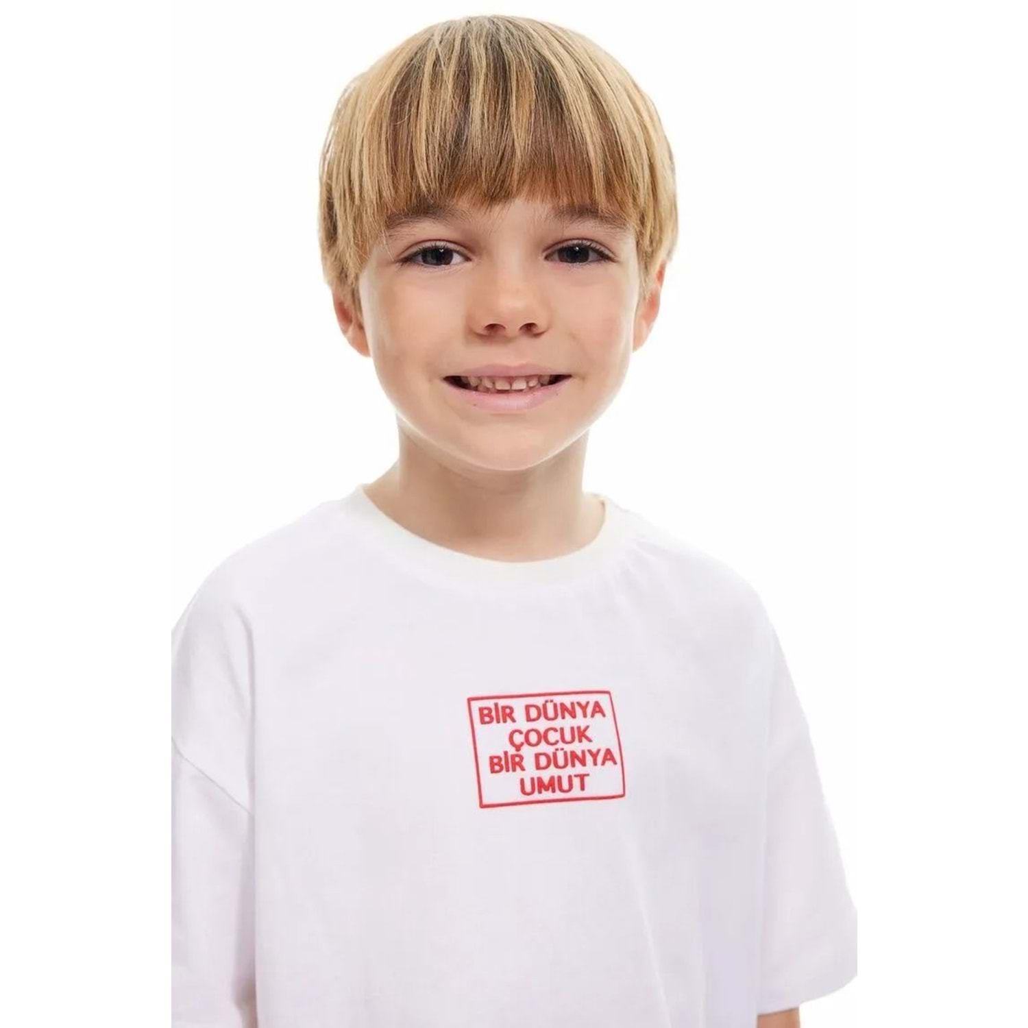 Erkek Çocuk Bisiklet Yaka Kısa Kollu Pamuklu Baskılı Tişört 5SKB10485TK - KOTON - BEYAZ - 4-5 YAŞ