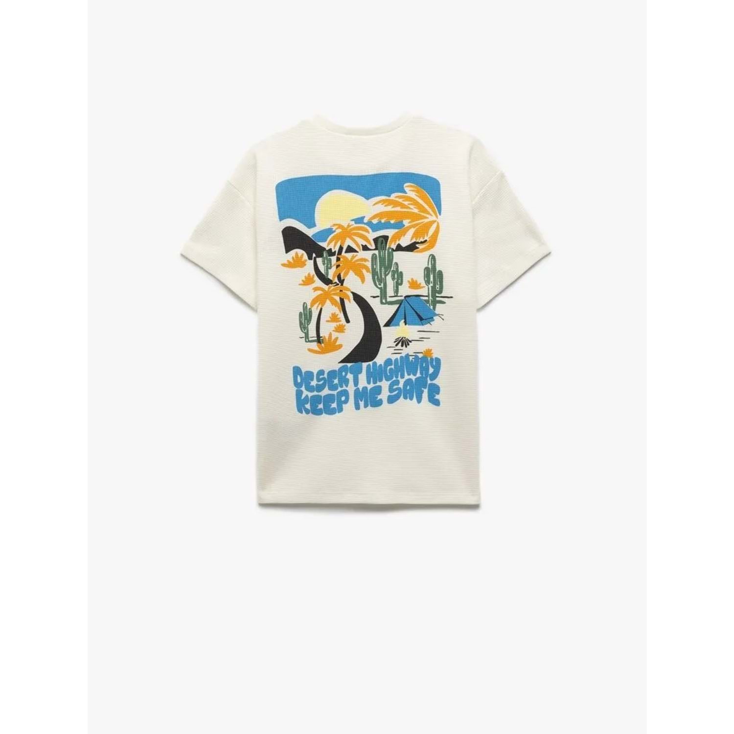 Erkek Çocuk Pamuklu Bisiklet Yaka Baskılı Kısa Kollu Tişört 5SKB10084TK - KOTON - EKRU - 6-7 YAŞ