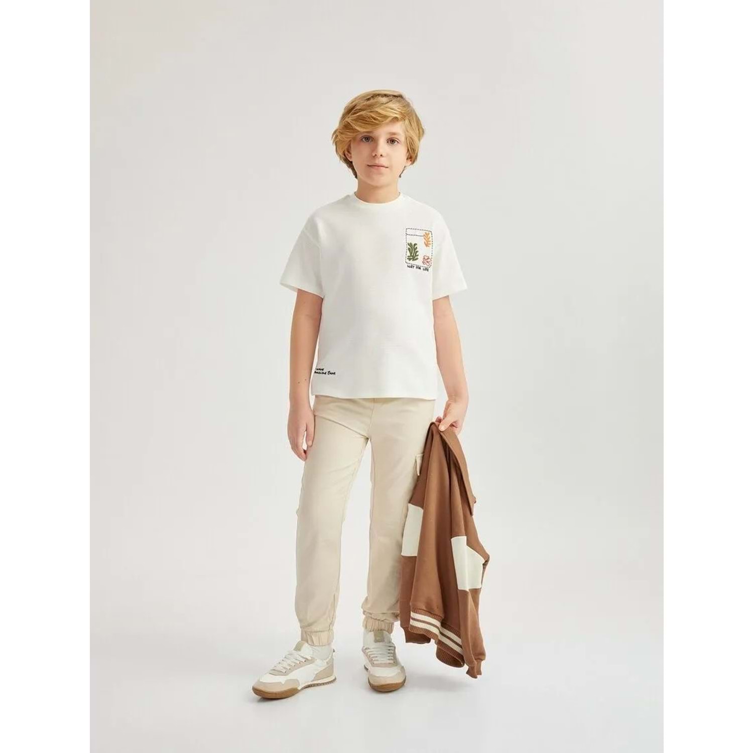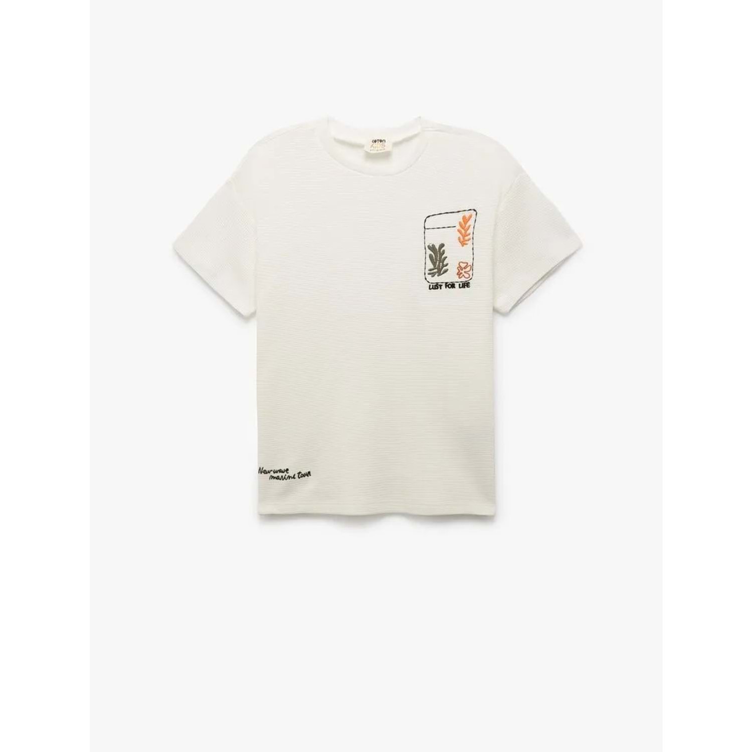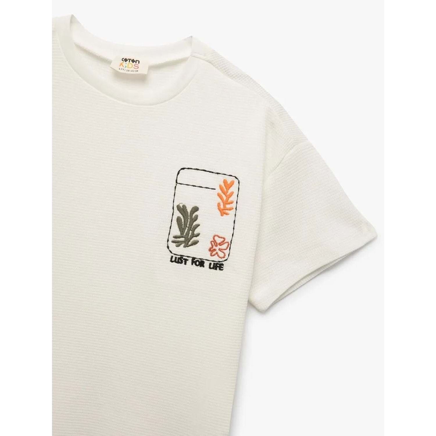 Erkek Çocuk Pamuklu Nakış Detaylı Bisiklet Yaka Kısa Kollu Tişört 5SKB10225TK - KOTON - EKRU - 4-5 YAŞ
