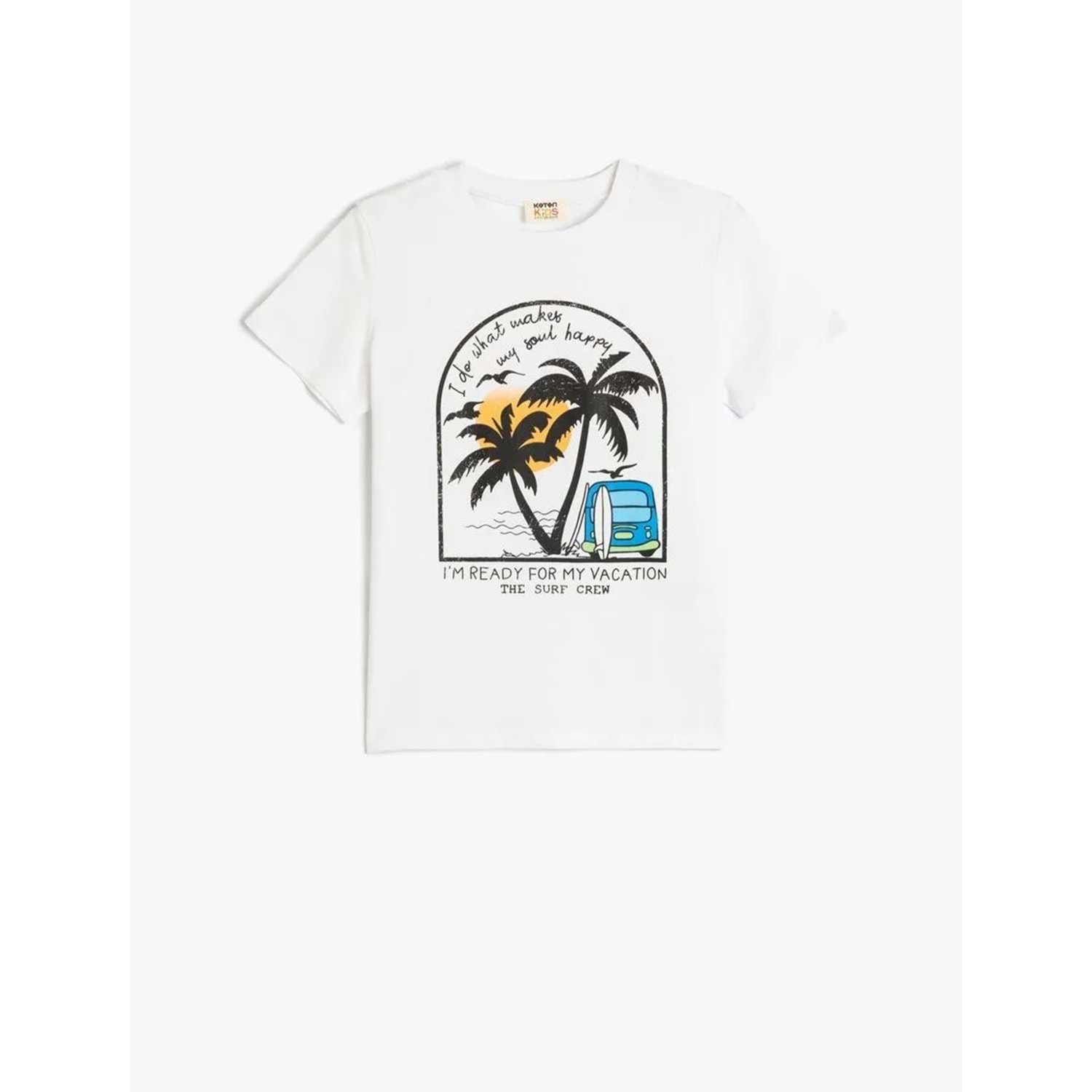 Erkek Çocuk Pamuklu Palmiye Baskılı Bisiklet Yaka Kısa Kollu Tişört 5SKB10088TK - KOTON - BEYAZ - 7-8 YAŞ