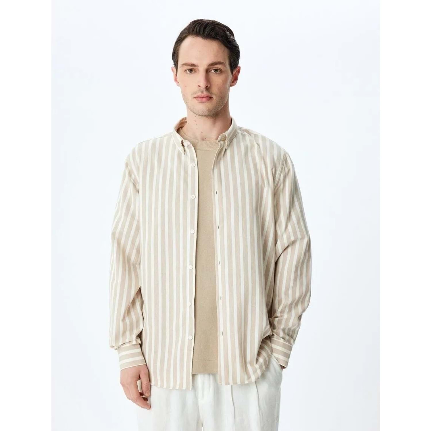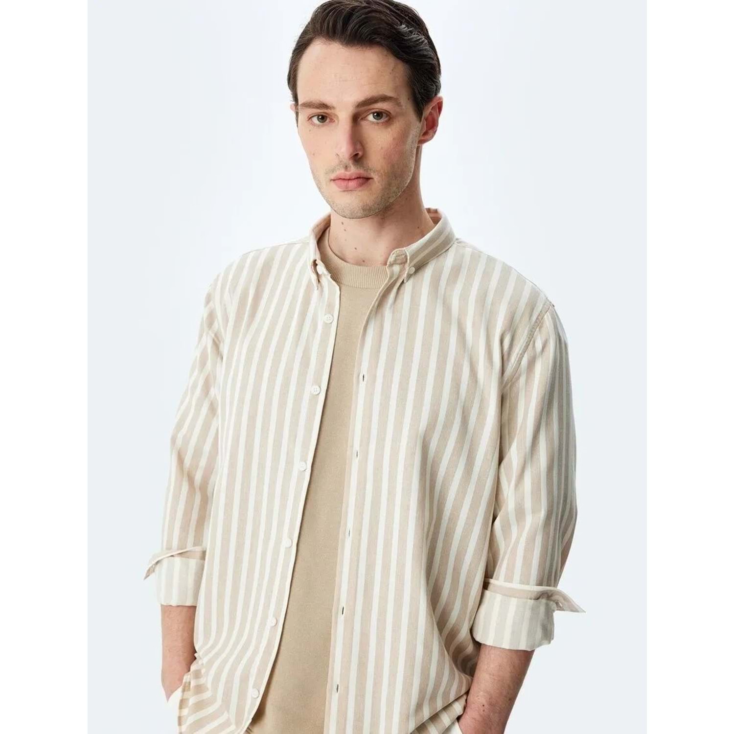 Çizgili Uzun Kollu Düğmeli Yaka Slim Fit Gömlek 5SAM60023HW