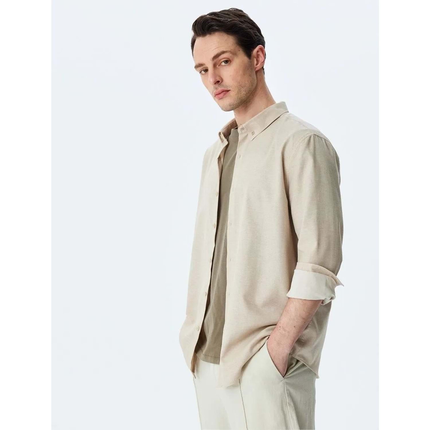 Düğmeli Yaka Klasik Slim Fit Gömlek 5SAM60054HW - KOTON - BEJ - XL