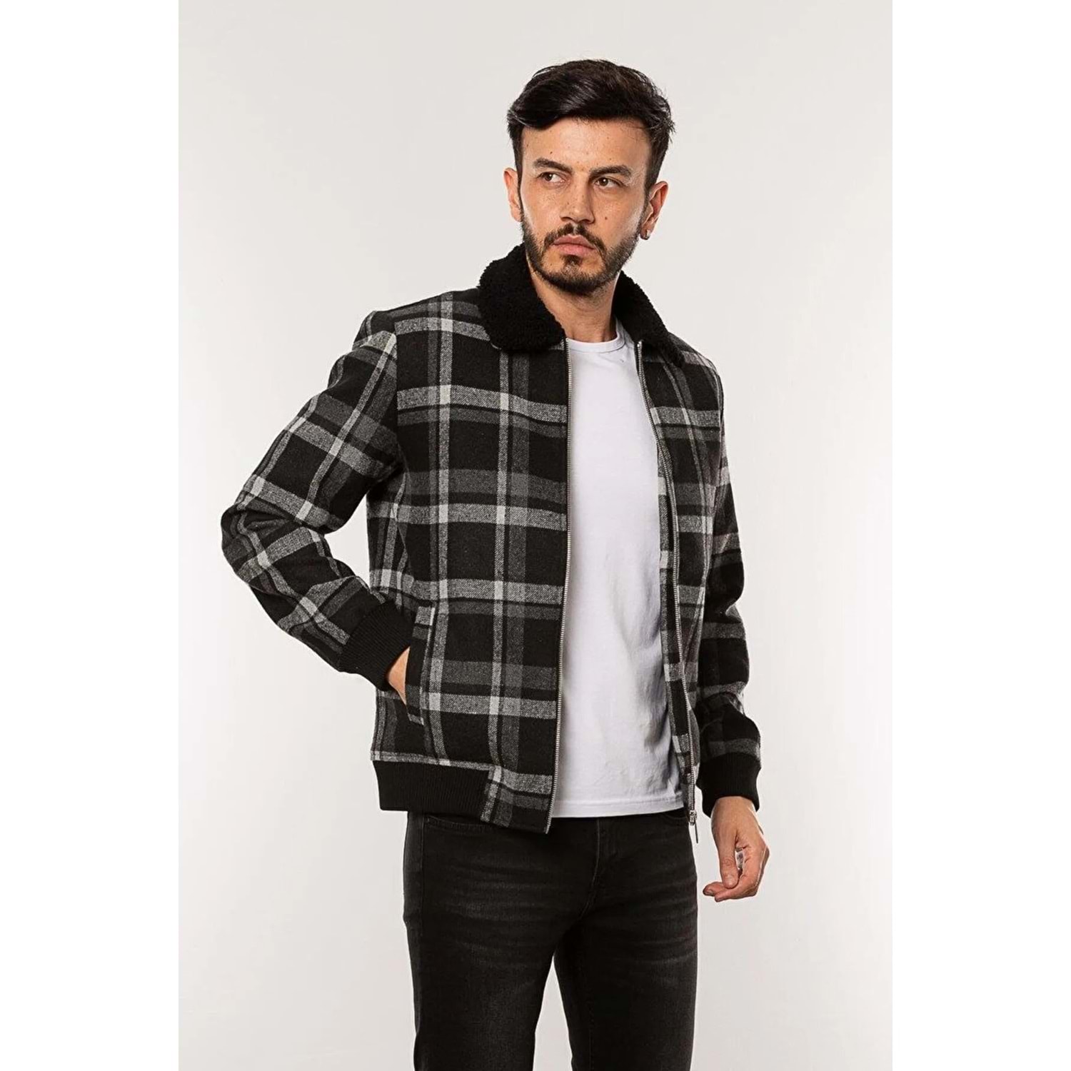 Erkek Giyim Ekose Pamuklu Belden Lastikli Mont