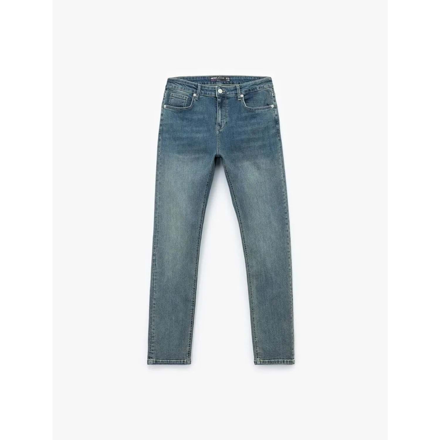 Bu jean pantolon, kombinlerinize modern ve şık bir görünüm sunuyor. Slim fit yapısı ile vücuda oturan bu pantolon, standart bel yüksekliğiyle rahat bir kullanım sağlıyor. Günlük giyiminizde şıklığı ve konforu bir arada sunuyor. Düğmeli ve cepli tasarımı, günlük giyim için ekstra pratiklik sağlıyor.