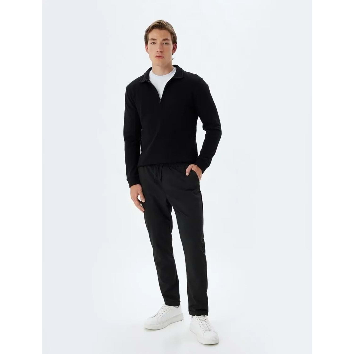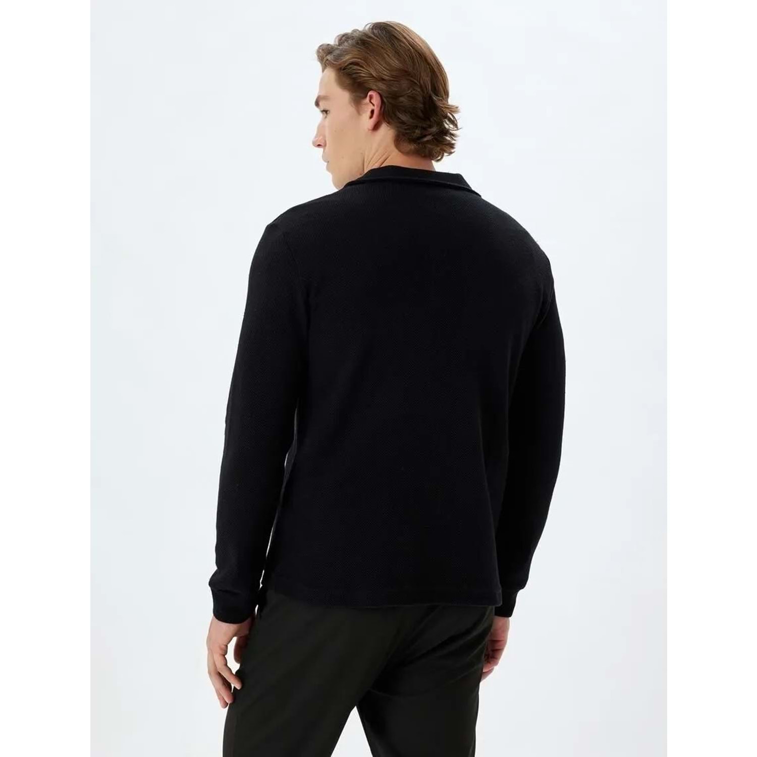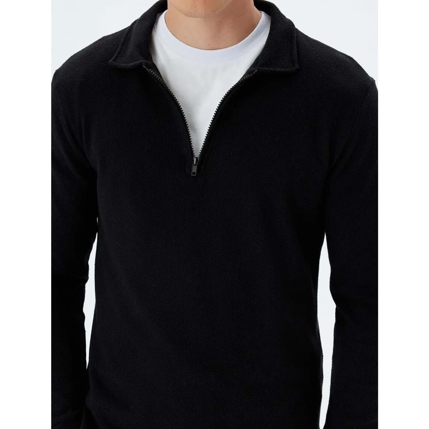 Polo Yaka Sweatshirt Yarım Fermuar - KOTON - 5WAM70068MK - SİYAH - XL