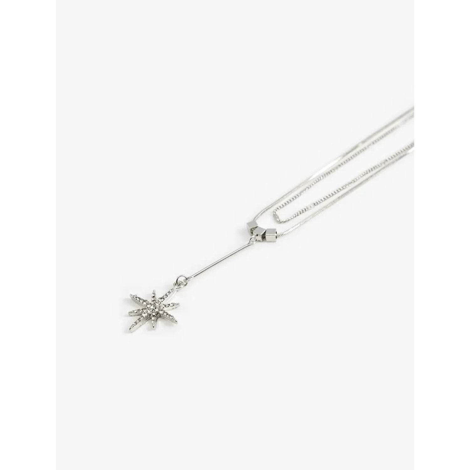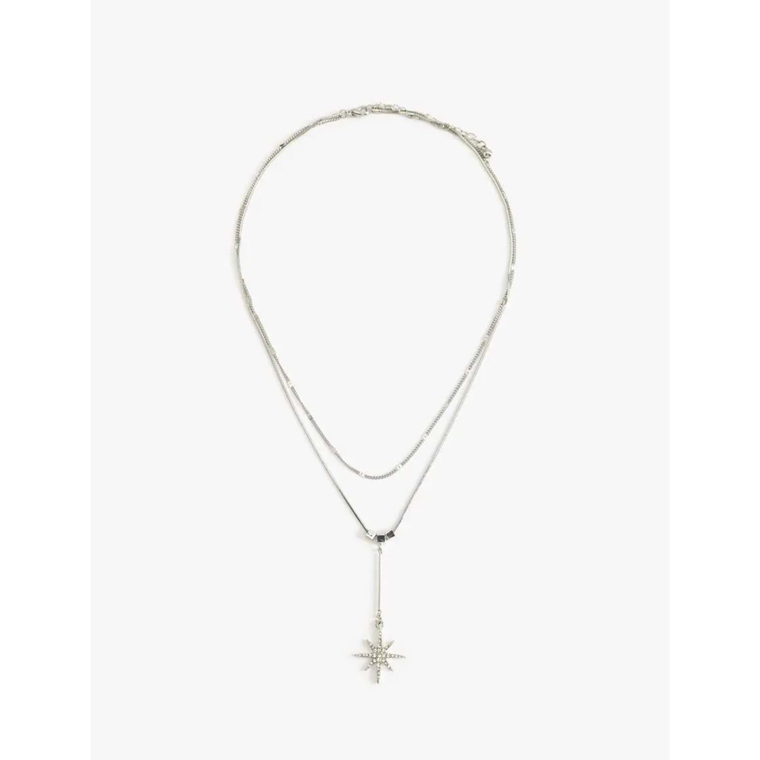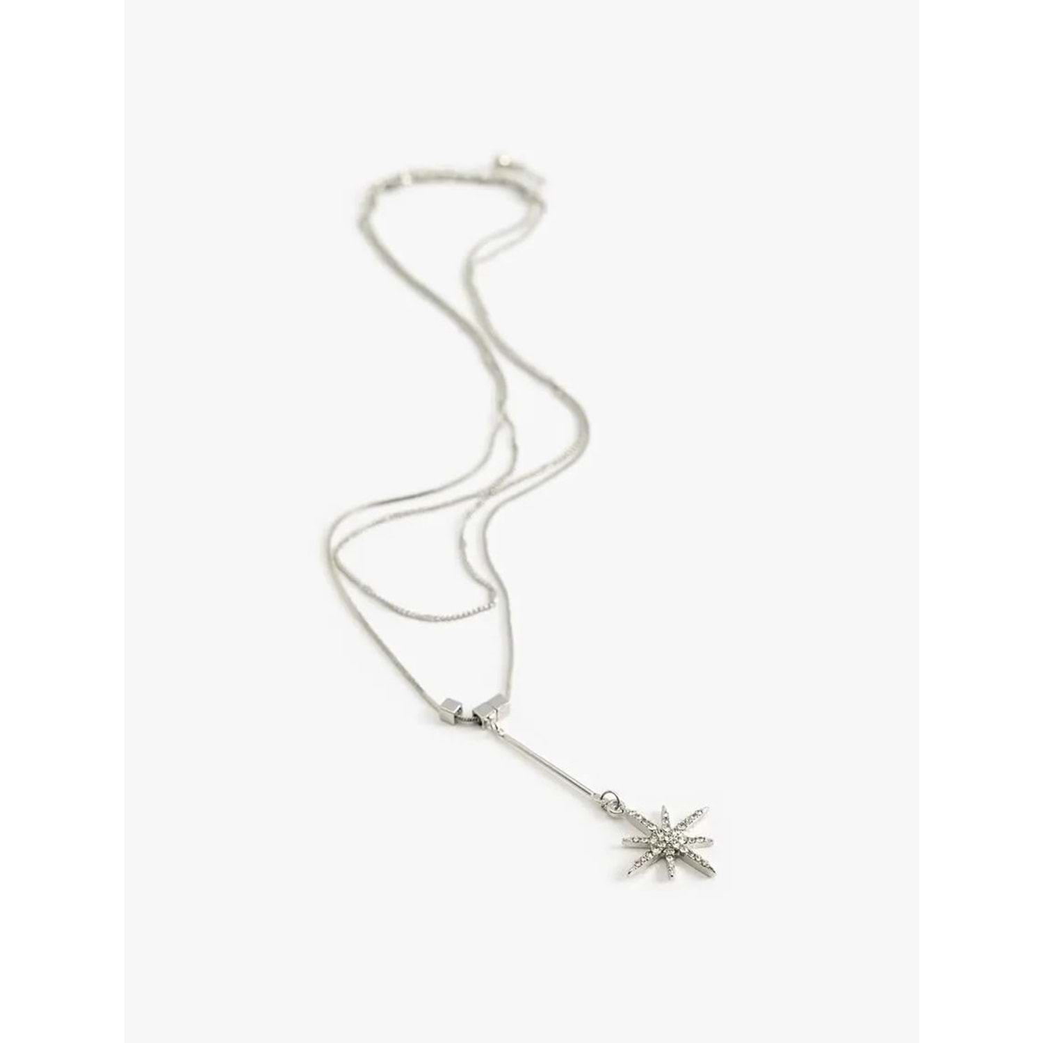 Charm detaylı, 2 sıralı, çelik kolye.