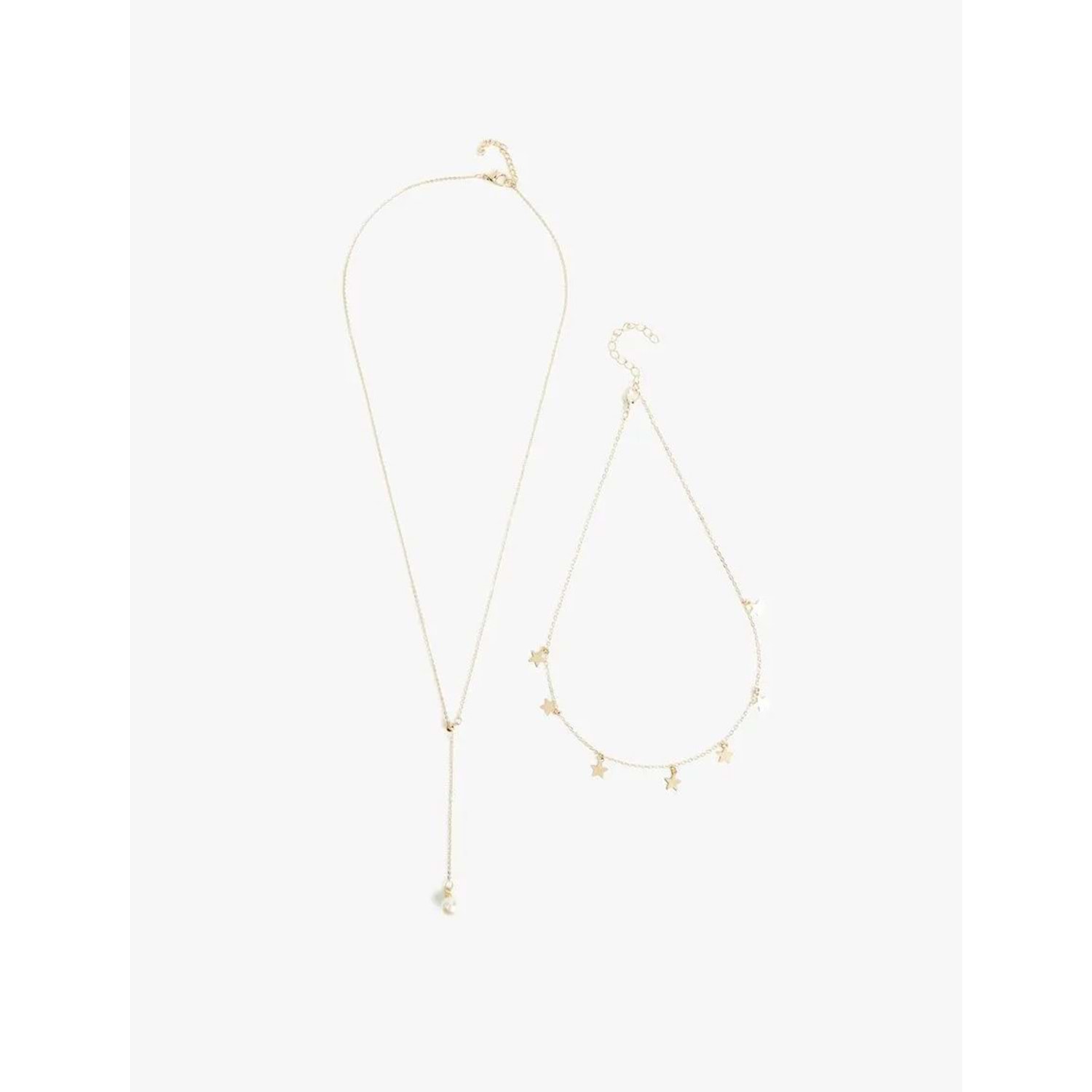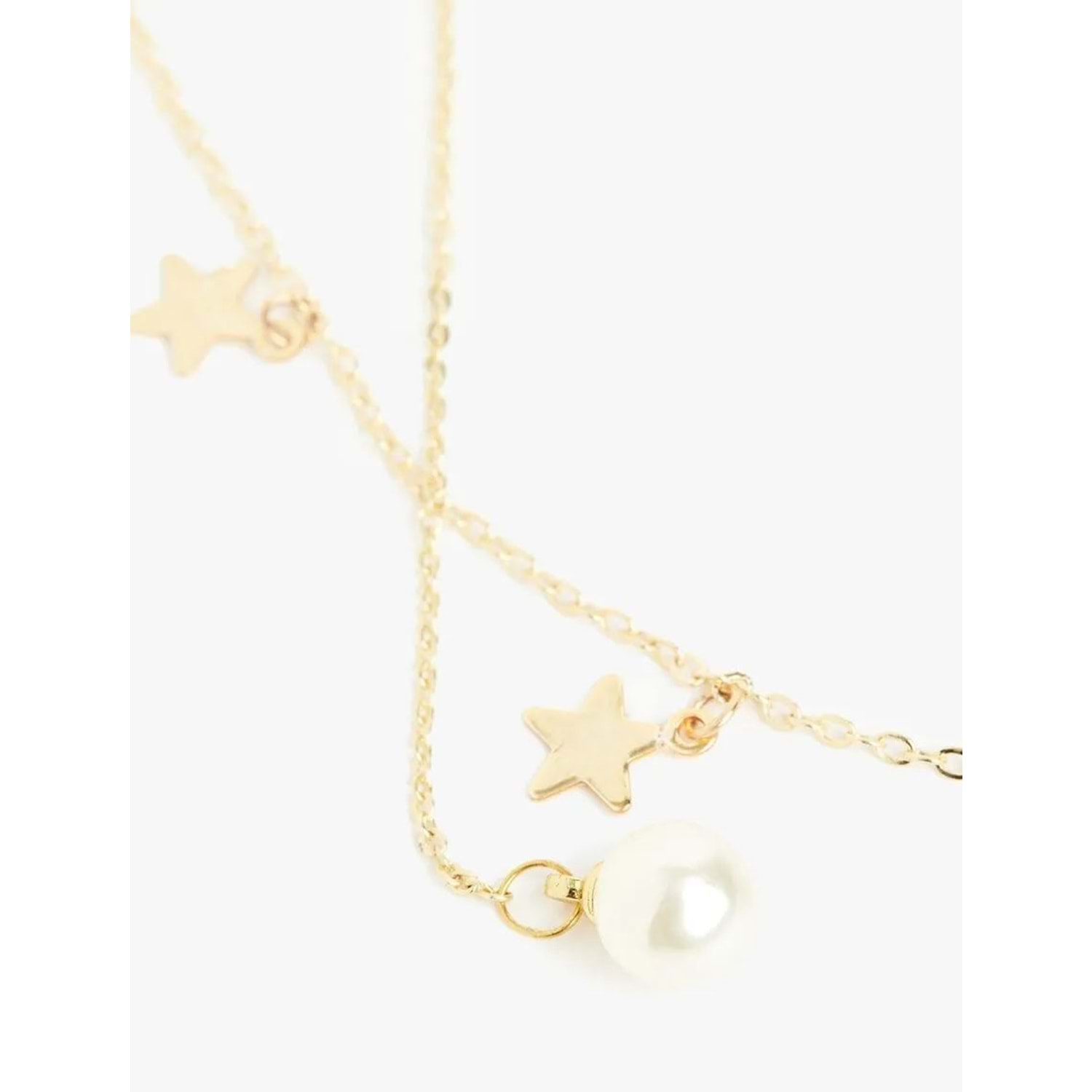 Sallantılı, inci detaylı, yıldızlı kolye.