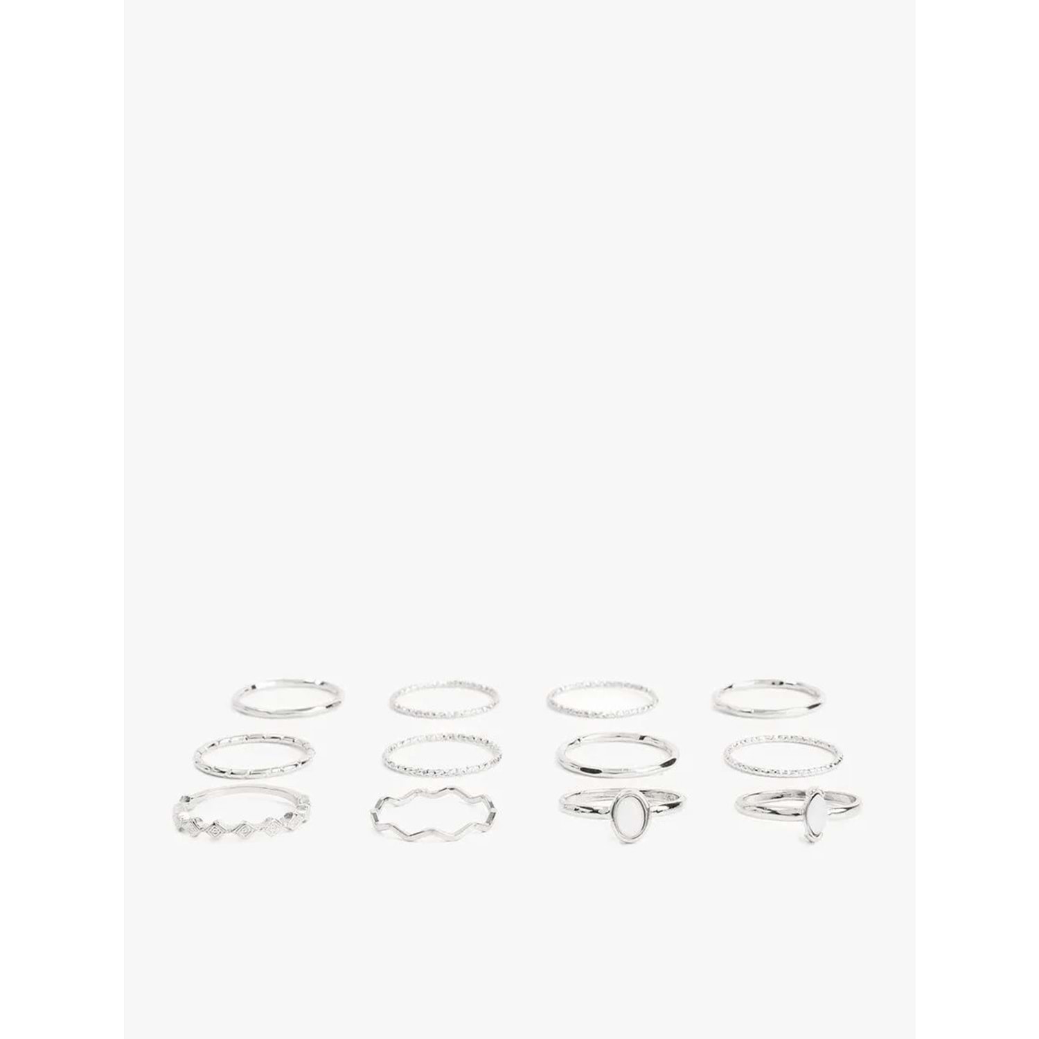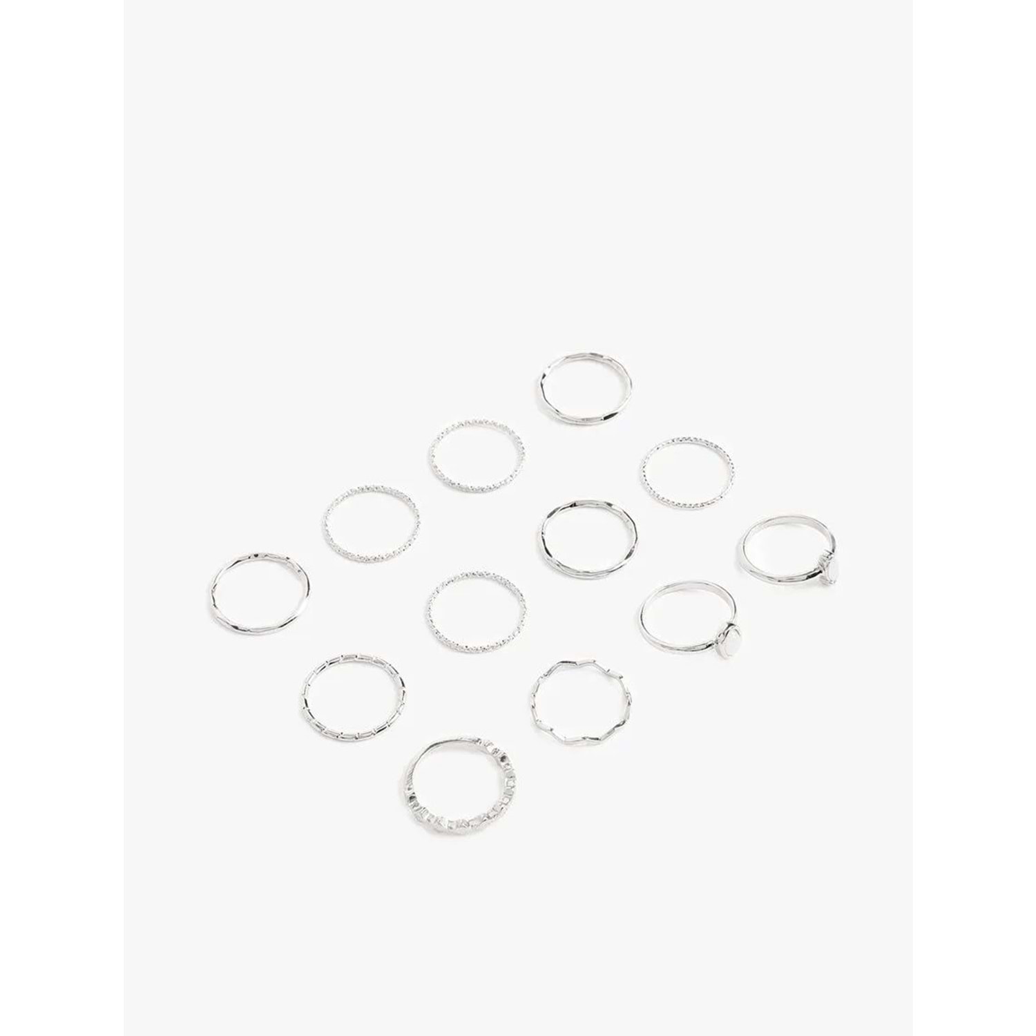 Taş detaylı, burgu, çelik, 12'li yüzük seti.