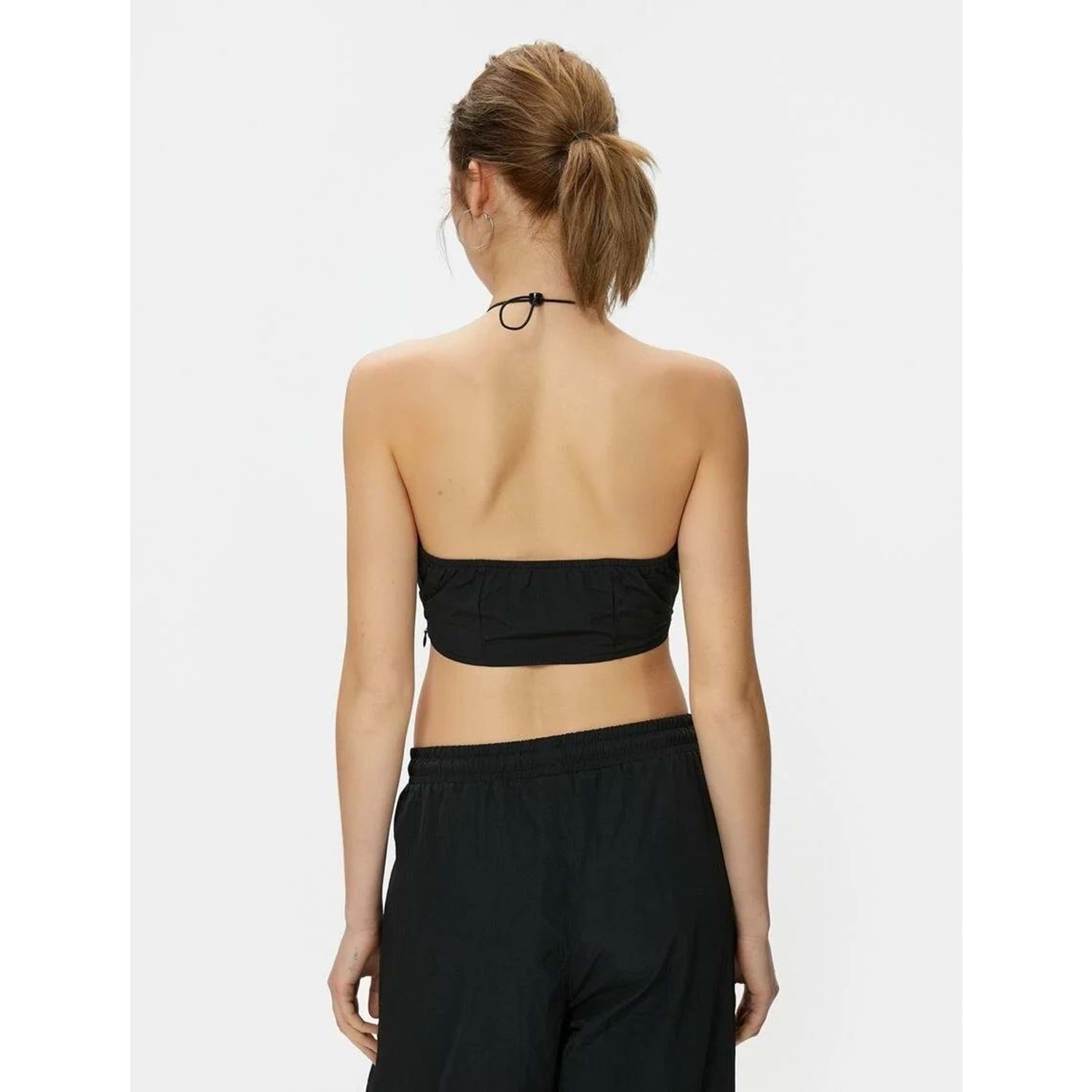 Crop Paraşüt Üst Halter Yaka Stoper Detaylı - KOTON - 4SAL30010IW - SİYAH - 38