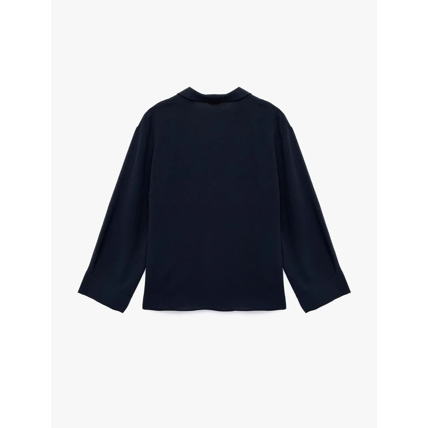 Aerobin Kumaş Uzun Kollu V Gömlek Yaka Bluz 6SAK60150EW - KOTON - LACİVERT - 40