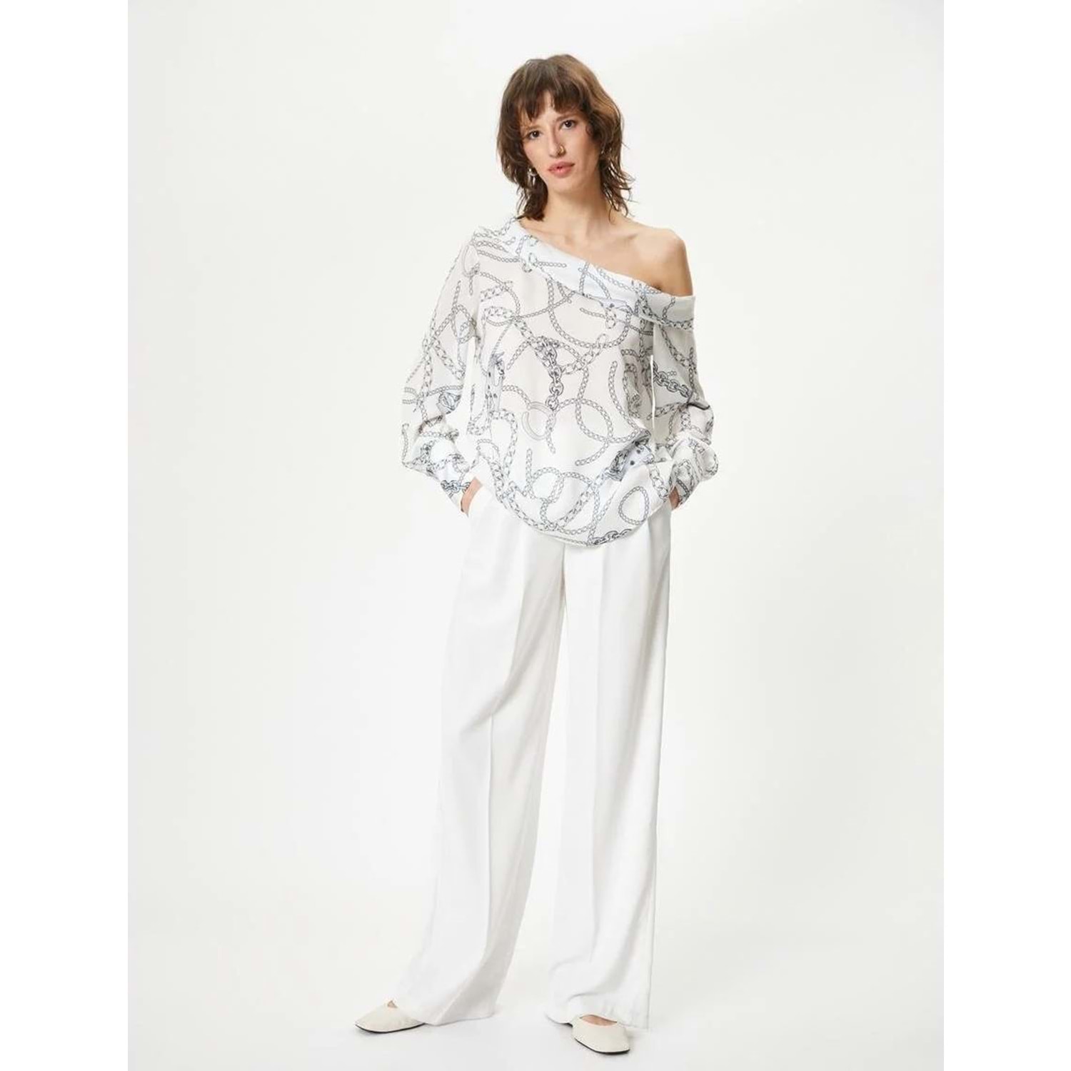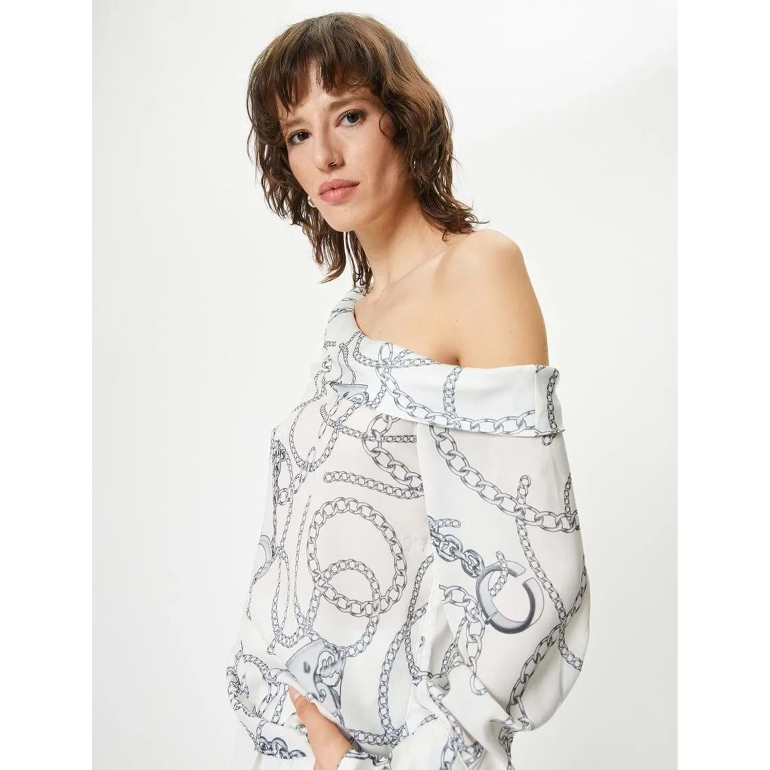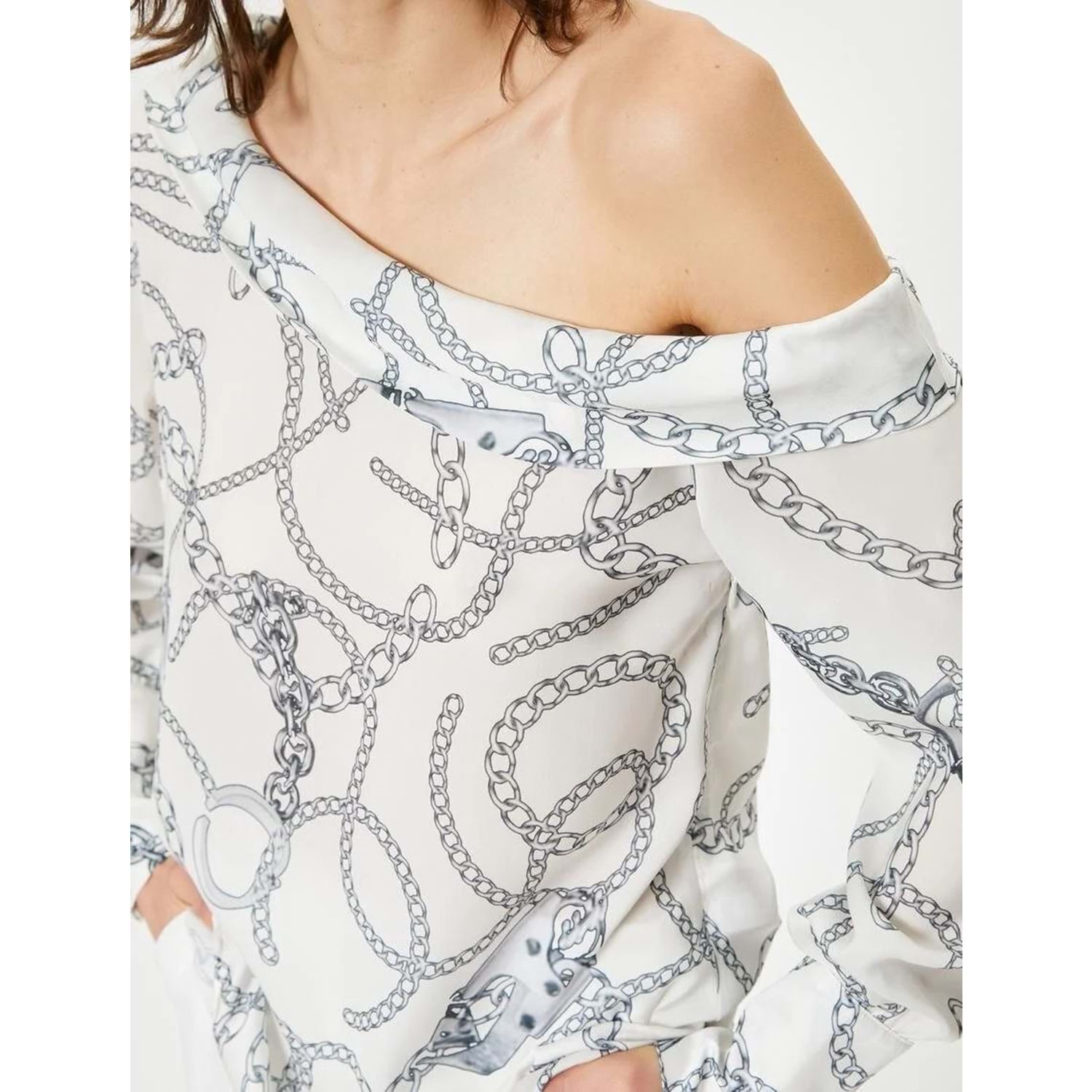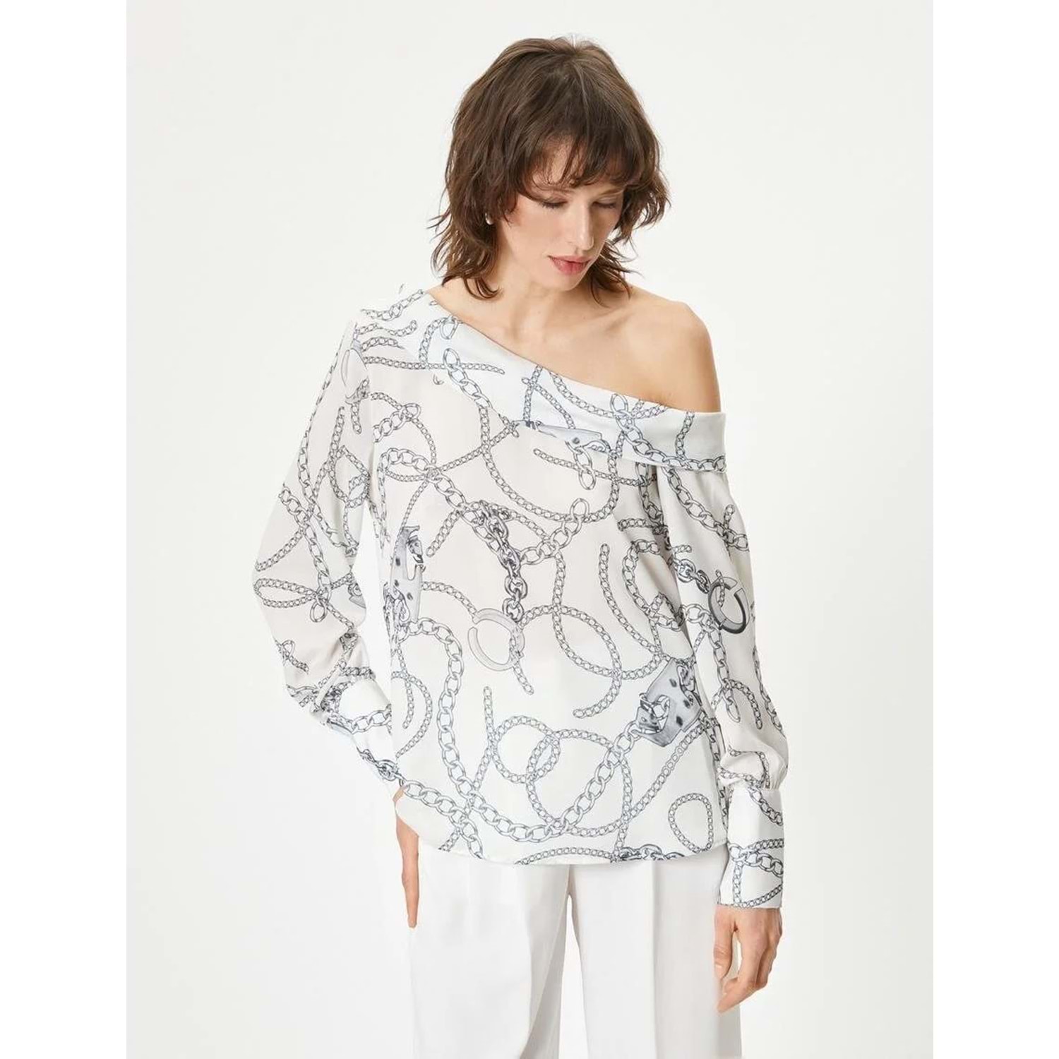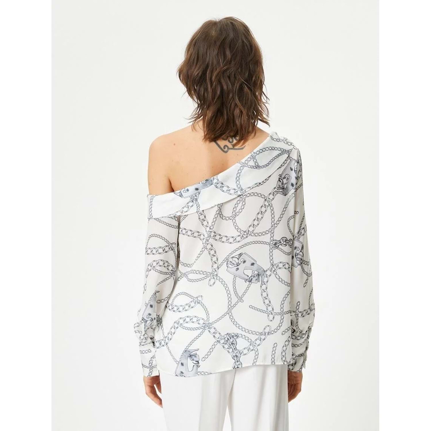 Degaje Yaka Bluz Şal Desenli Uzun Kollu - KOTON - 4SAK60314UW - BEYAZ DESENLİ - 42
