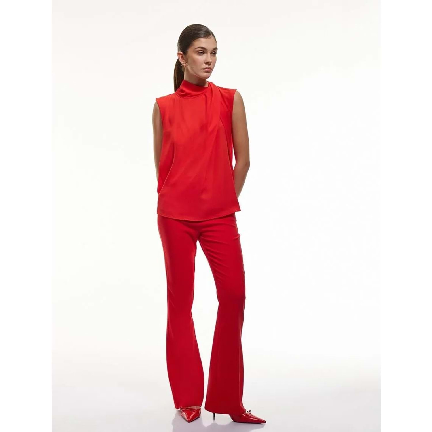 Dik Yaka Kolsuz Krep Bluz 5SAK60275UW - KOTON - KIRMIZI - 40