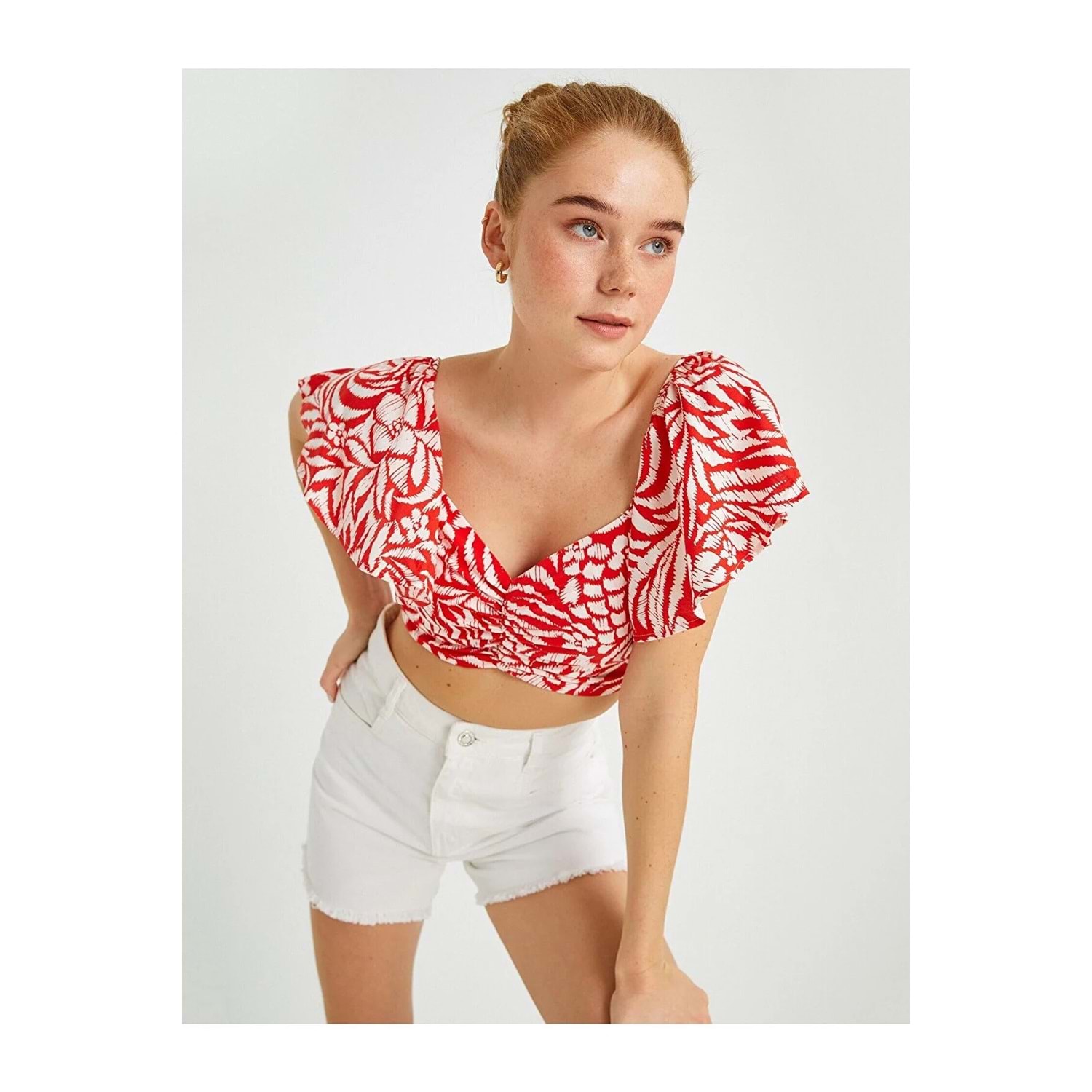 Kadın Giyim Bluz Desen Bluz Bağlama Detaylı Gömlek Yaka 2SAK60267PW Kırmızı Desen