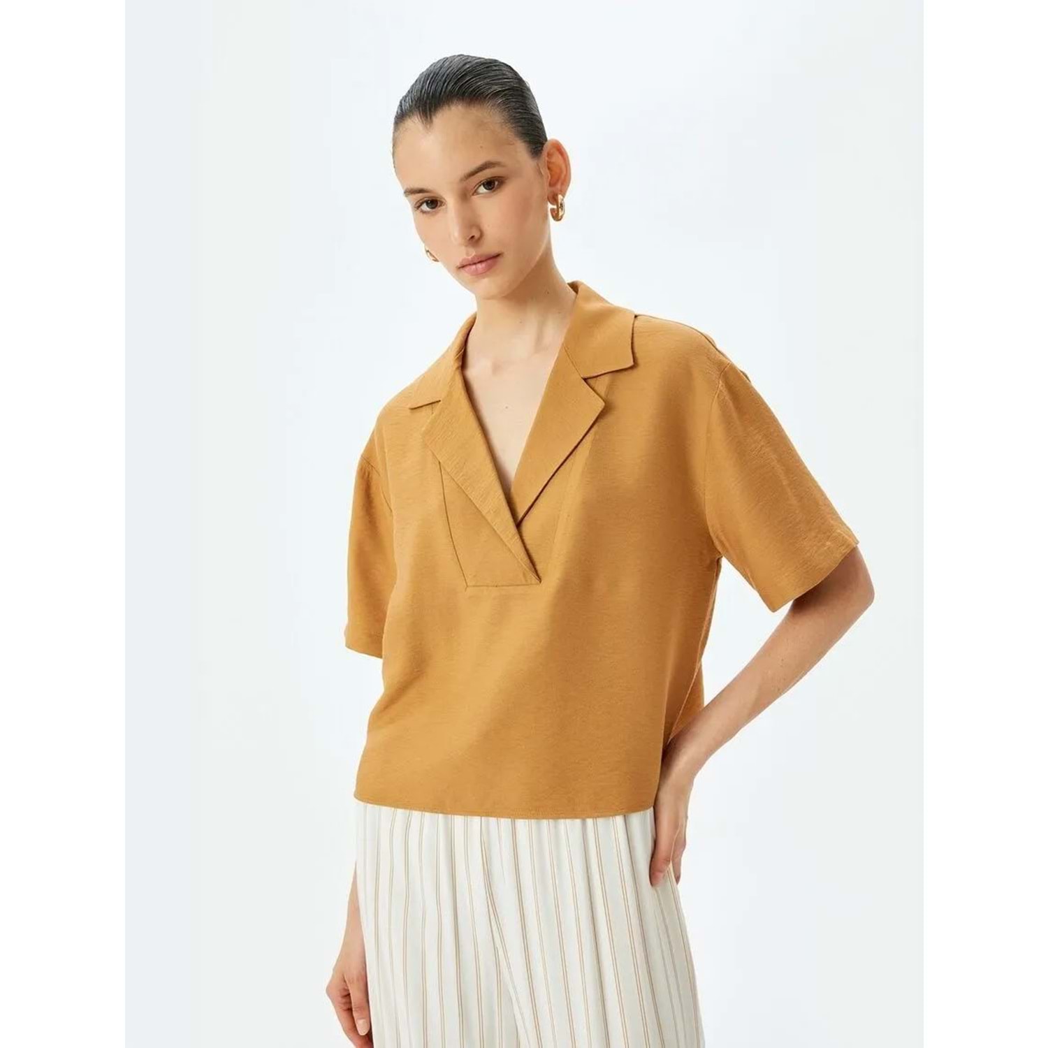 Viskon Kısa Kollu Bol Kesim Polo Yaka Bluz