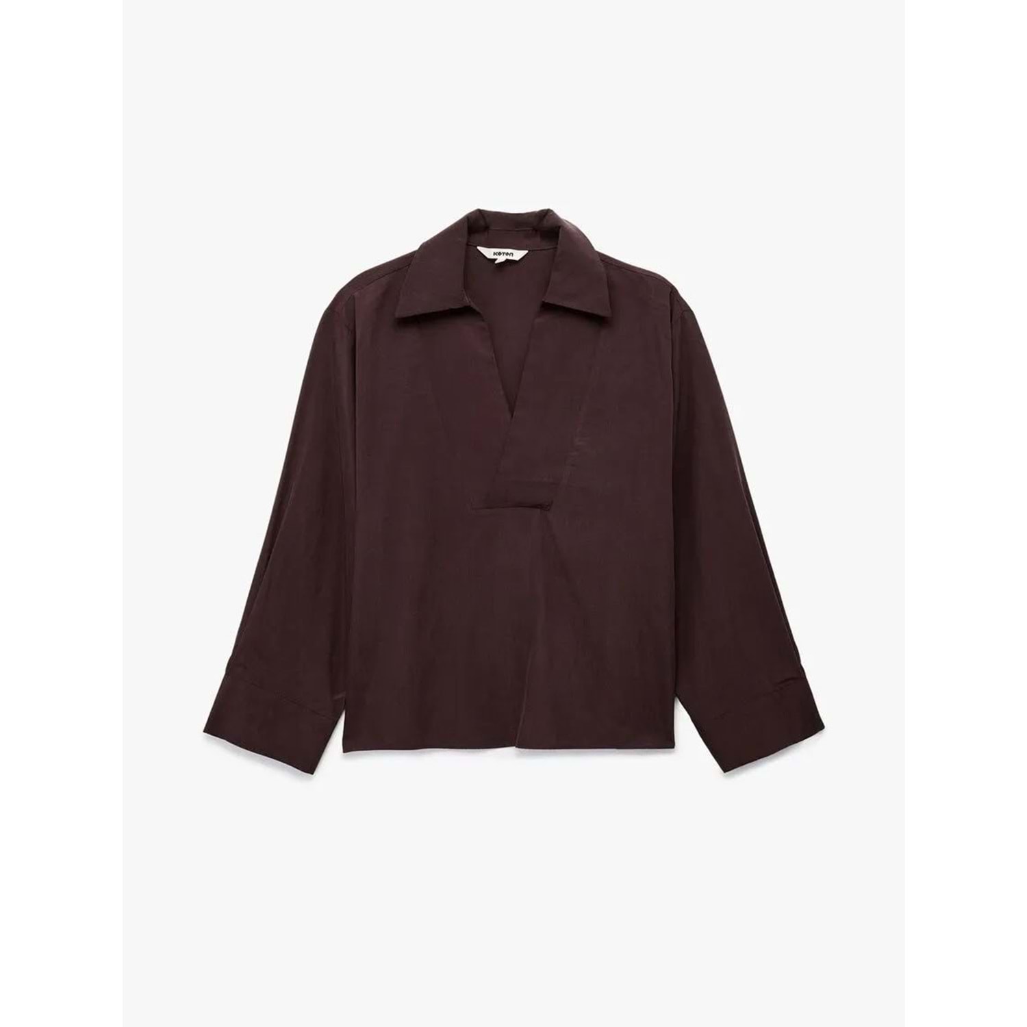 Uzun Kollu V Gömlek Yaka Bluz 6SAK60016EW - KOTON - MÜRDÜM - 44