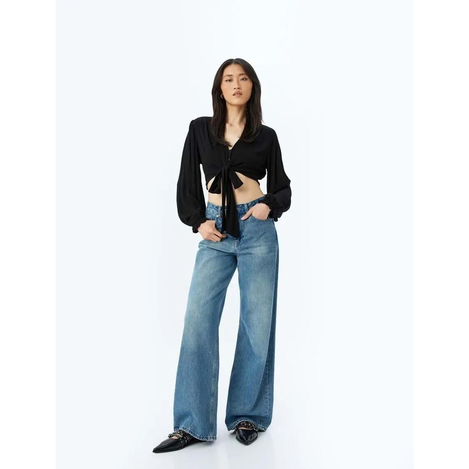 Viskon Crop Bluz 5SAK60003EW - KOTON - SİYAH - 44
