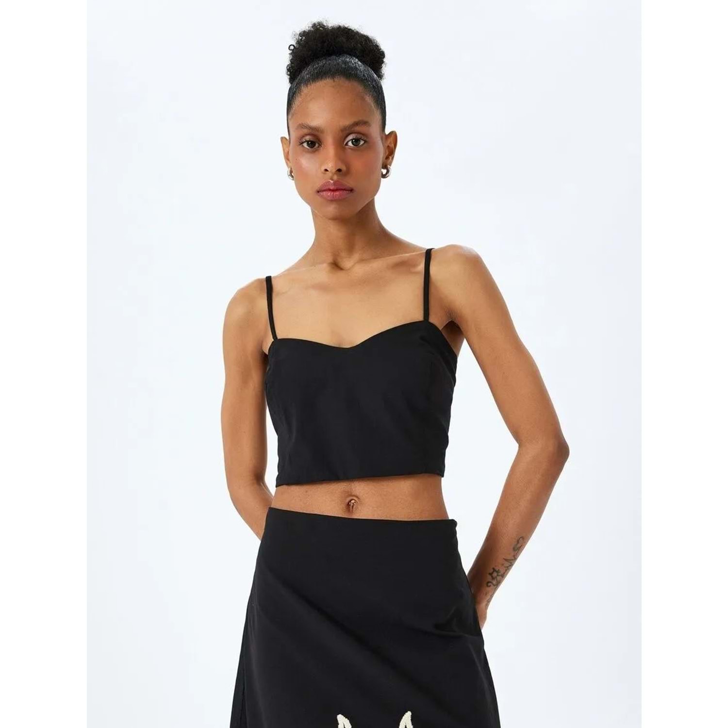 Pamuklu Slim Fit Gipeli İnce Askılı Crop Büstiyer 5SAK30004EW - KOTON - SİYAH - 34