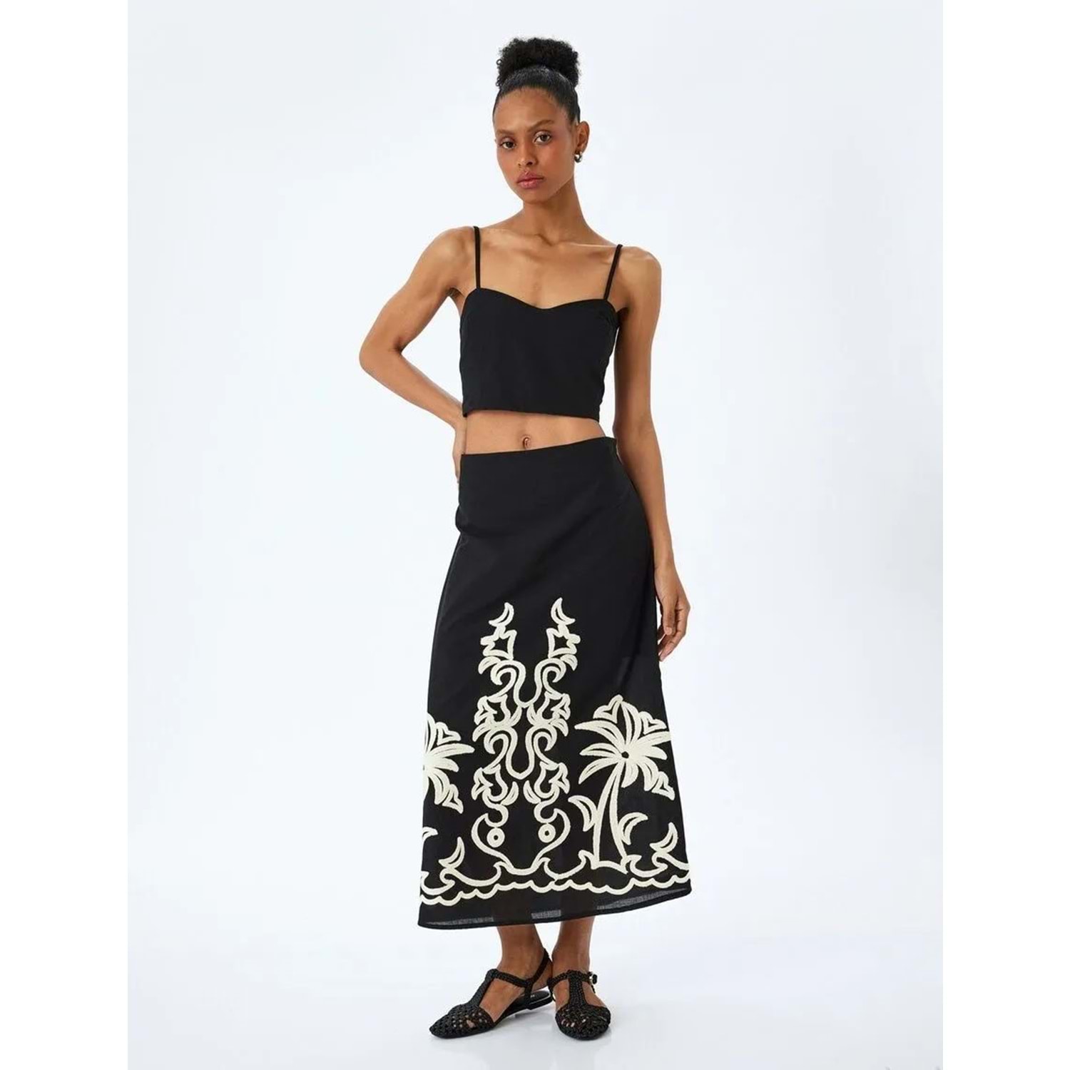 Pamuklu Slim Fit Gipeli İnce Askılı Crop Büstiyer 5SAK30004EW - KOTON - SİYAH - 38