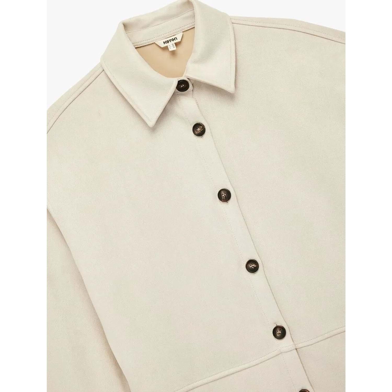 Kadın Giyim Kruvaze Uzun Kollu Düğmeli Suni Süet Gömlek Ceket - KOTON - 6WAK20204EW - Taş - 34