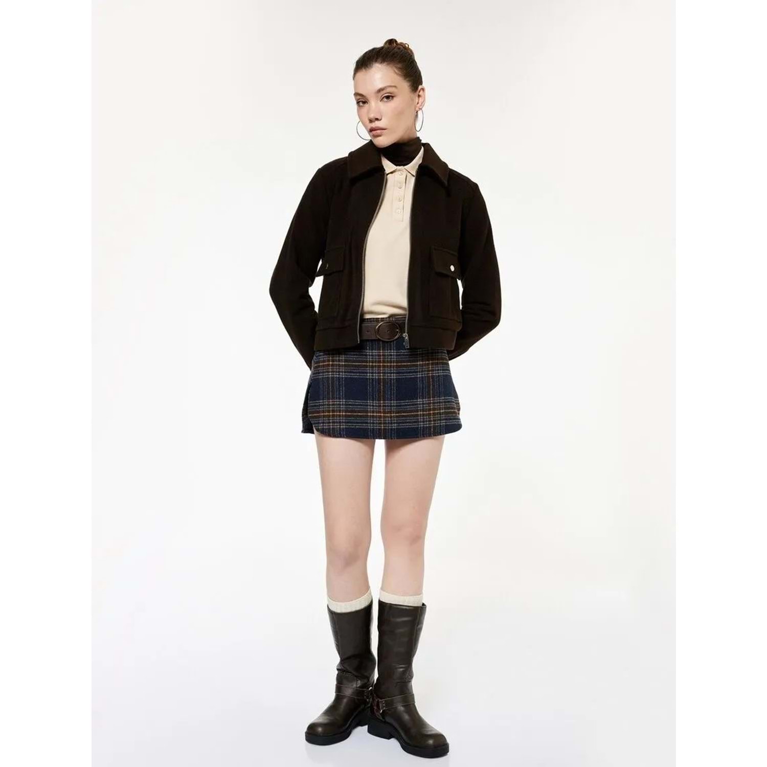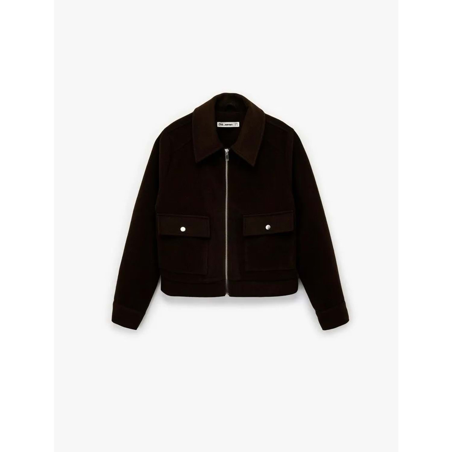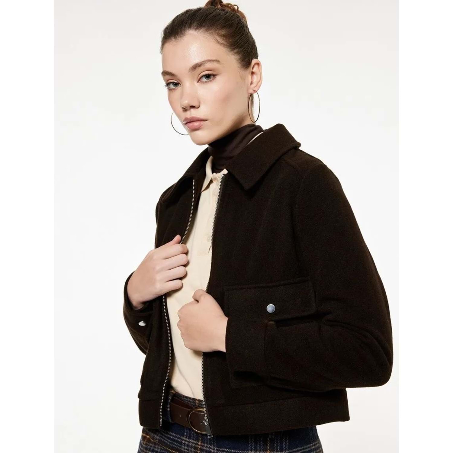 Kadın Giyim Uzun Kollu Klasik Yaka Cep Detaylı Oversize Fermuarlı Ceket - KOTON - 6WAL60068IW - KAHVERENGİ - 40