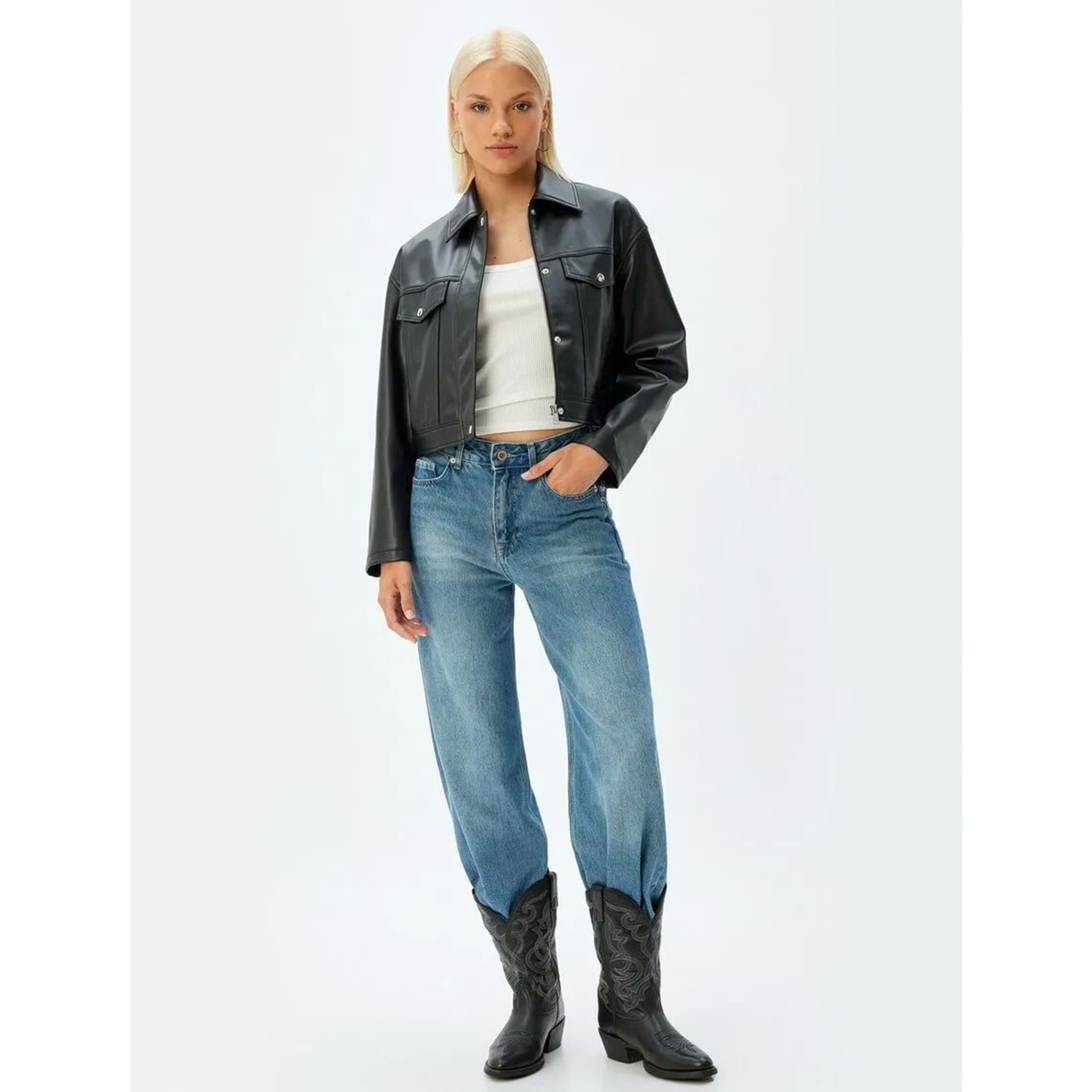 Suni Deri Ceket Fermuarlı Cepli 5SAK20007EW - KOTON - SİYAH - 42