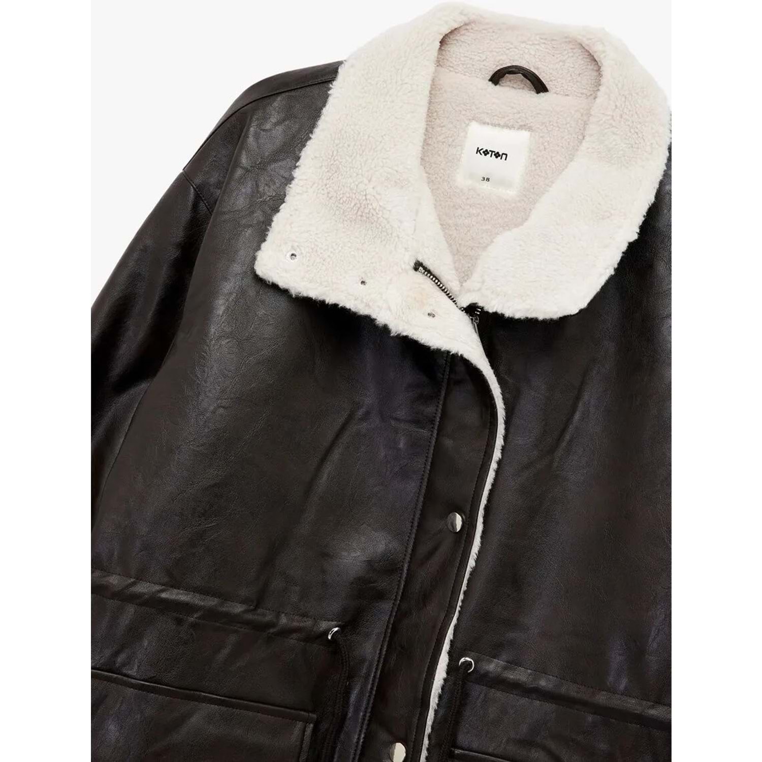 Kadın Giyim Bonded Kaban Uzun Kollu Kruvaze İçi Peluş Astarlı - KOTON - 6WAK00049EW - KAHVERENGİ - 44