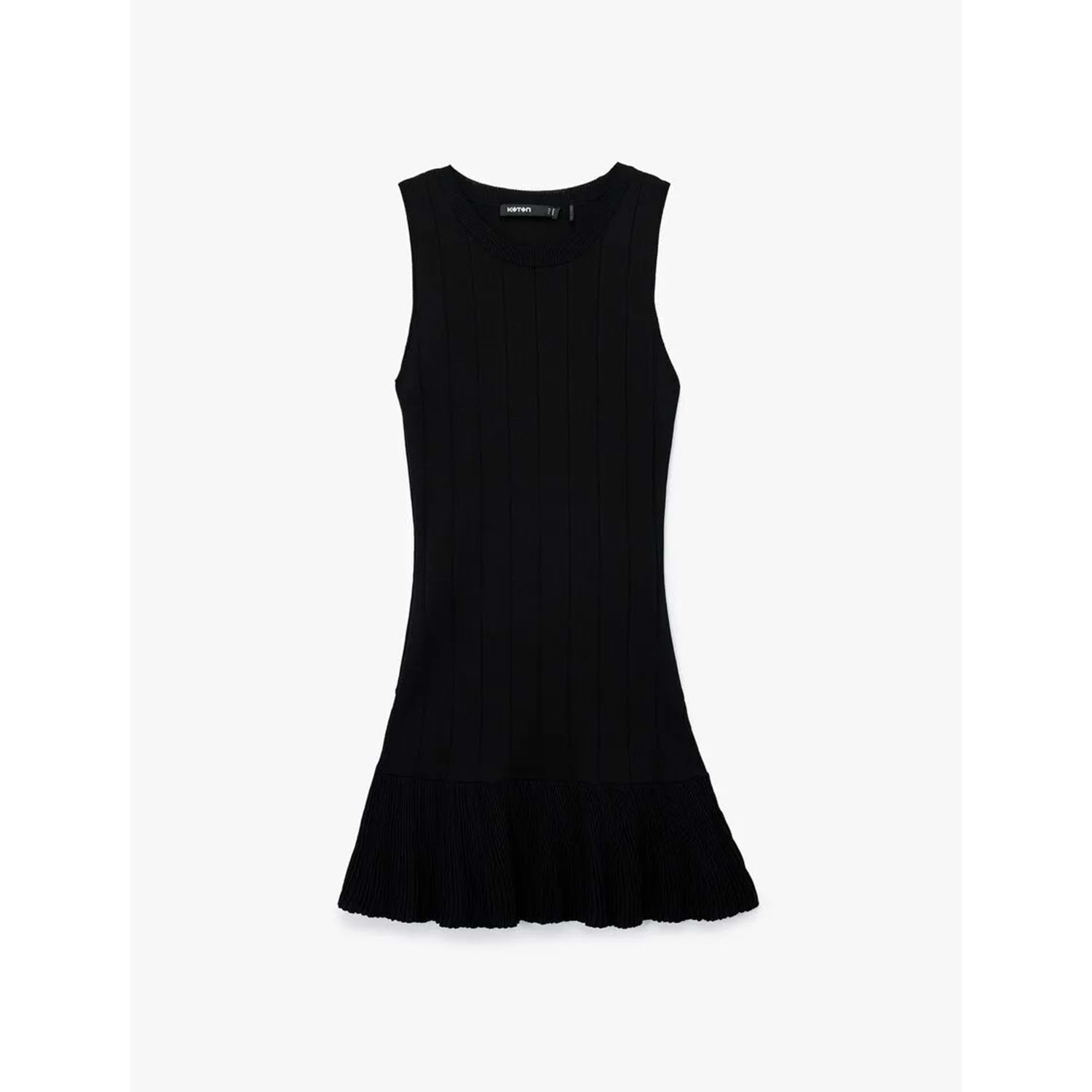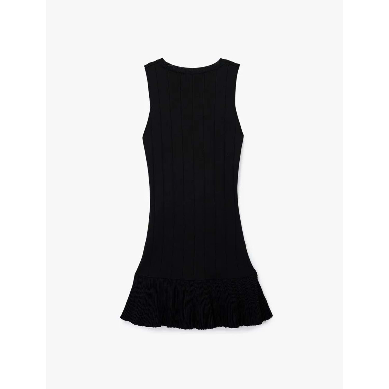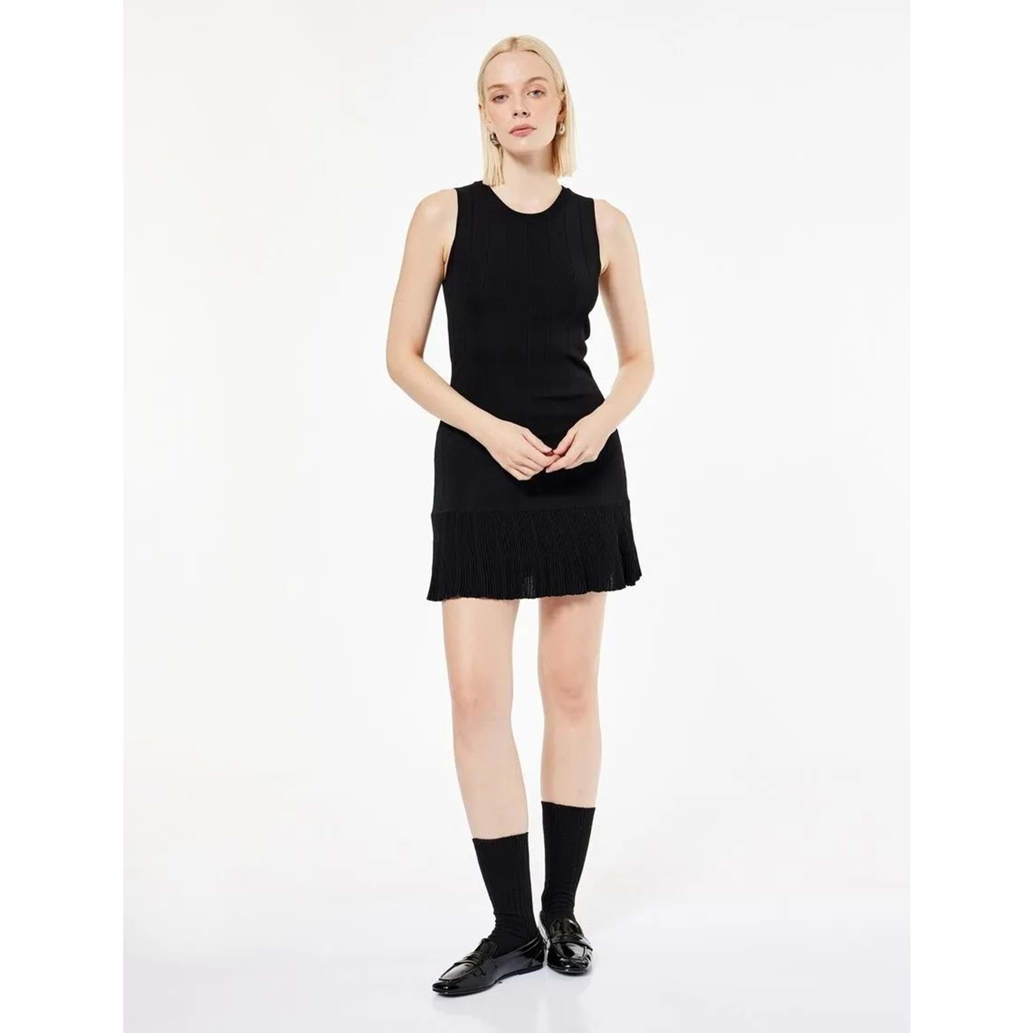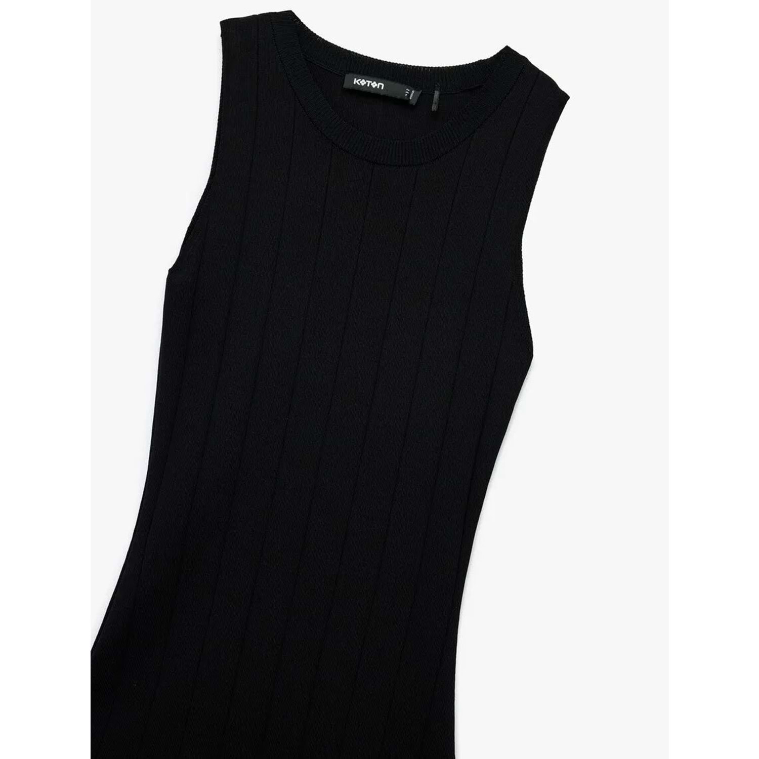 Kadın Giyim Metal Aksesuarlı A Kesim Kayık Yaka Kolsuz Mini Elbise - KOTON - 6WAK80033HT - SİYAH - M