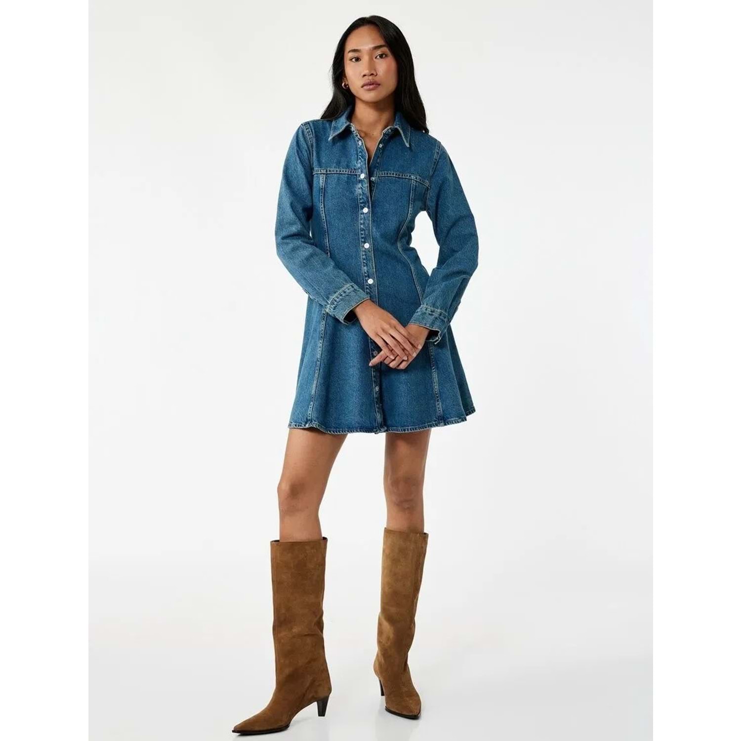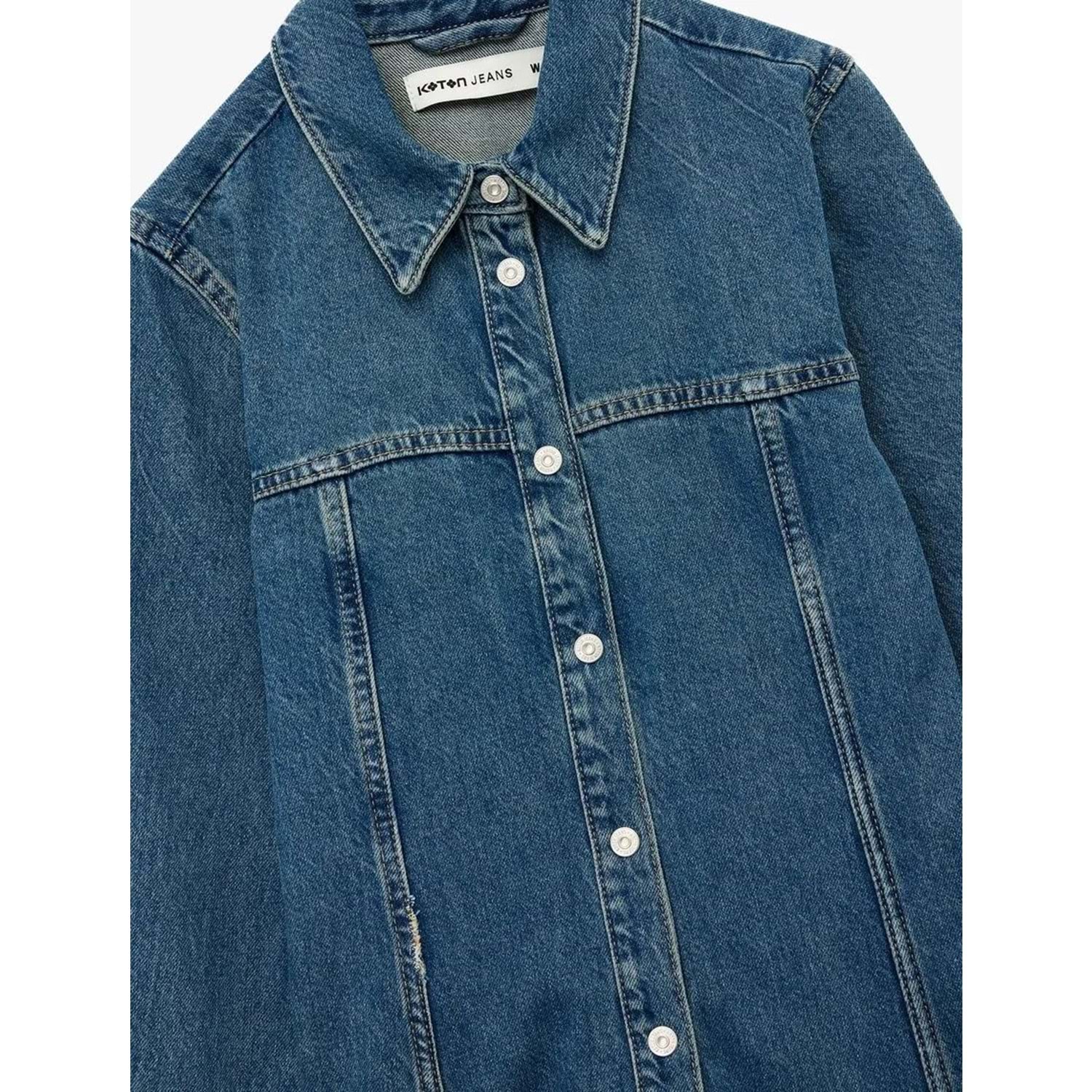 Kadın Giyim Pamuklu Uzun Kollu Klasik Yaka Düğmeli Volanlı Mini Denim Elbise - KOTON - 6WAL80010MD - KOYU İNDİGO - 38