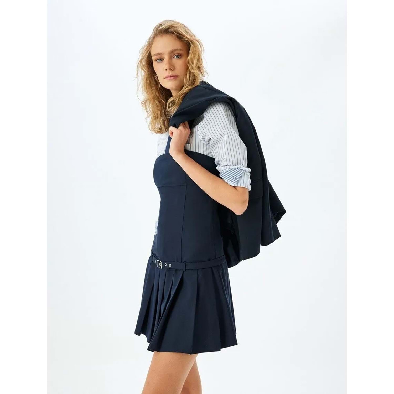 Kemer Detaylı Pileli Mini Straplez Elbise 5SAK80156PW - KOTON - LACİVERT - 42