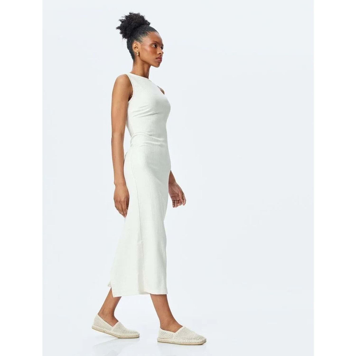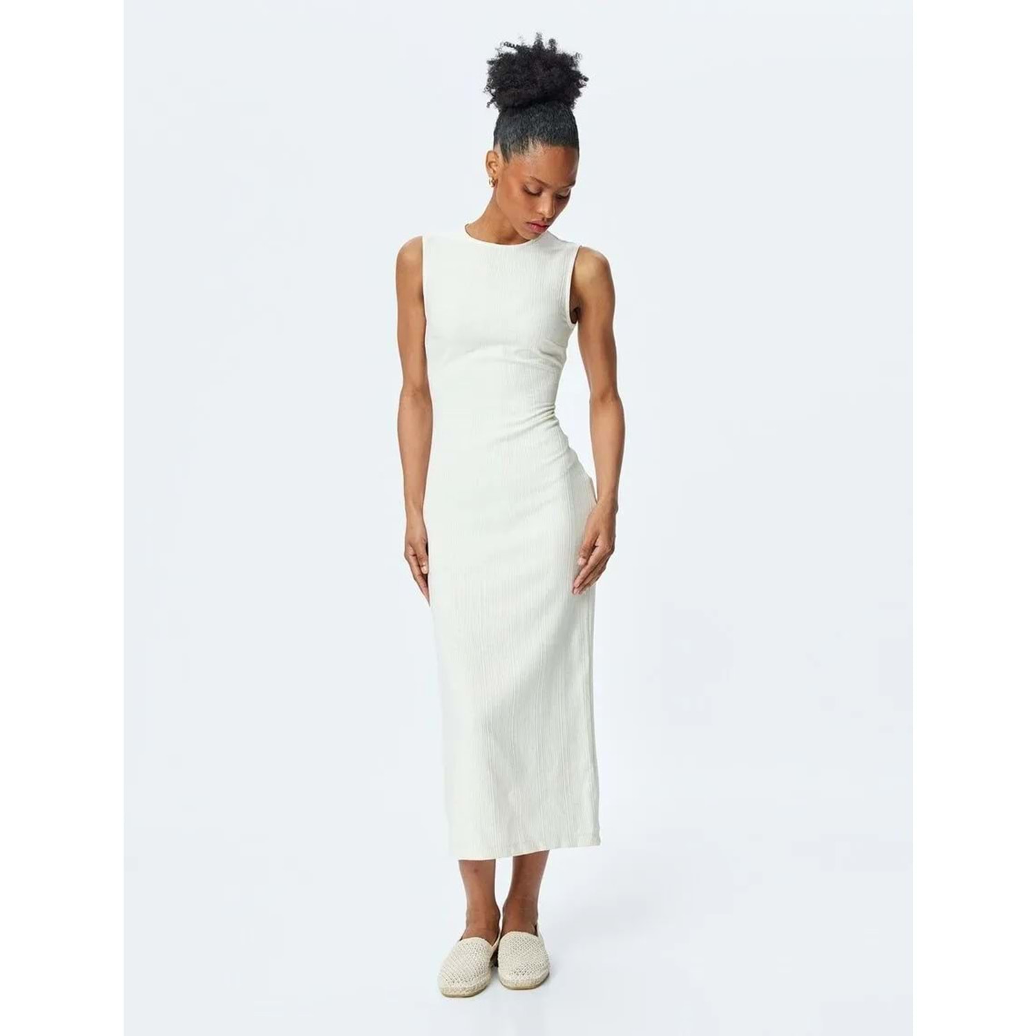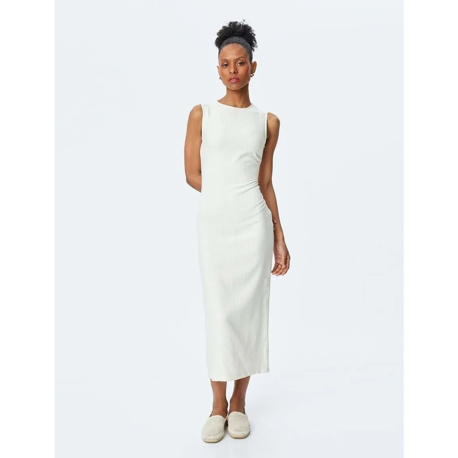 Yuvarlak Yaka Slim Fit Kolsuz Uzun Kalem Elbise 5SAK80064UW - KOTON - BEJ - 40