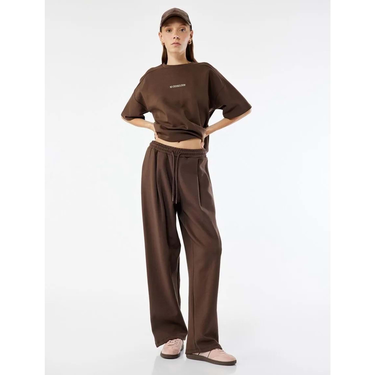 Kadın Giyim Pamuklu Rahat Kalıp Pileli Beli Bağcıklı Geniş Paça Eşofman Altı - KOTON - 6WAL40058IK - KAHVERENGİ - S