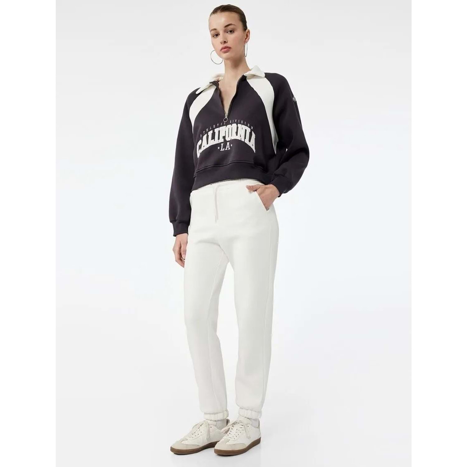 Kadın Giyim Şardonlu Cepli Beli Bağcıklı Rahat Kalıp Jogger Eşofman Altı - KOTON - 6WAL40015IK - EKRU - M