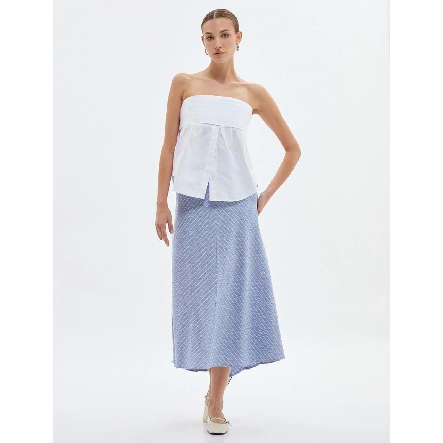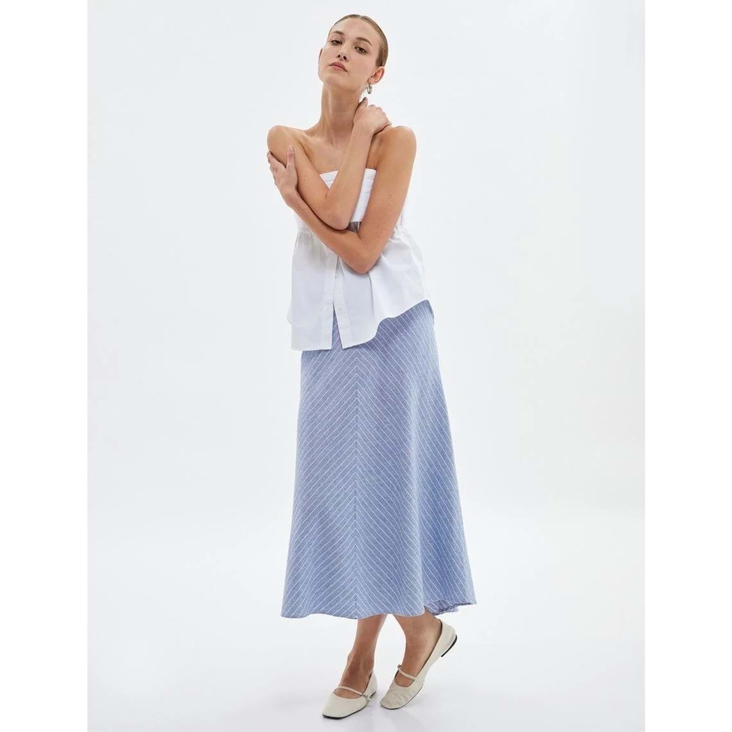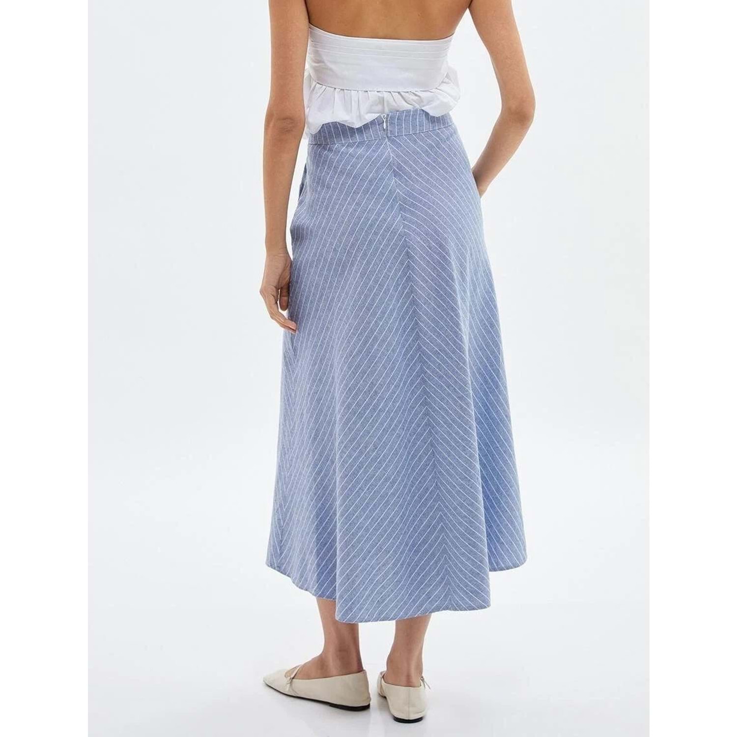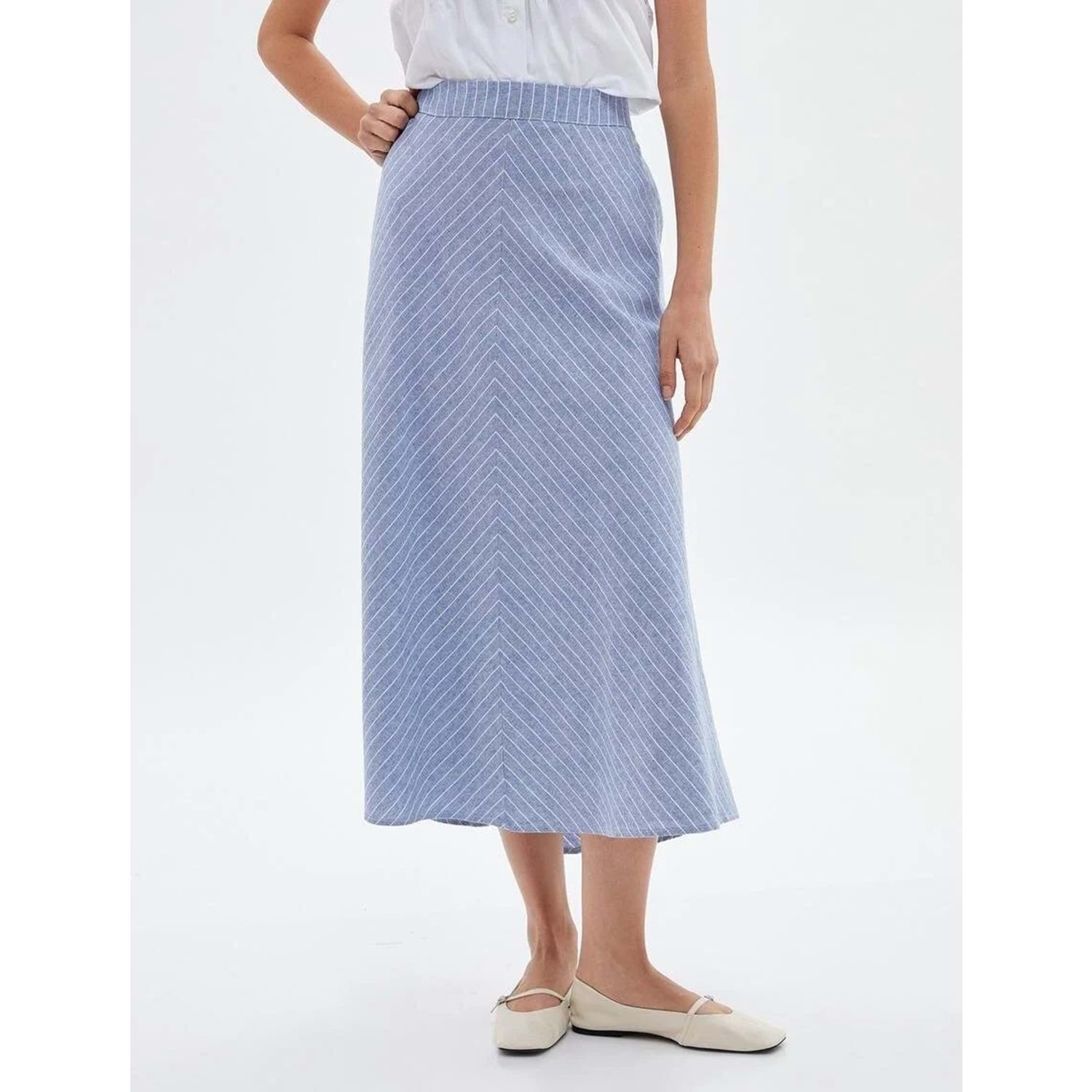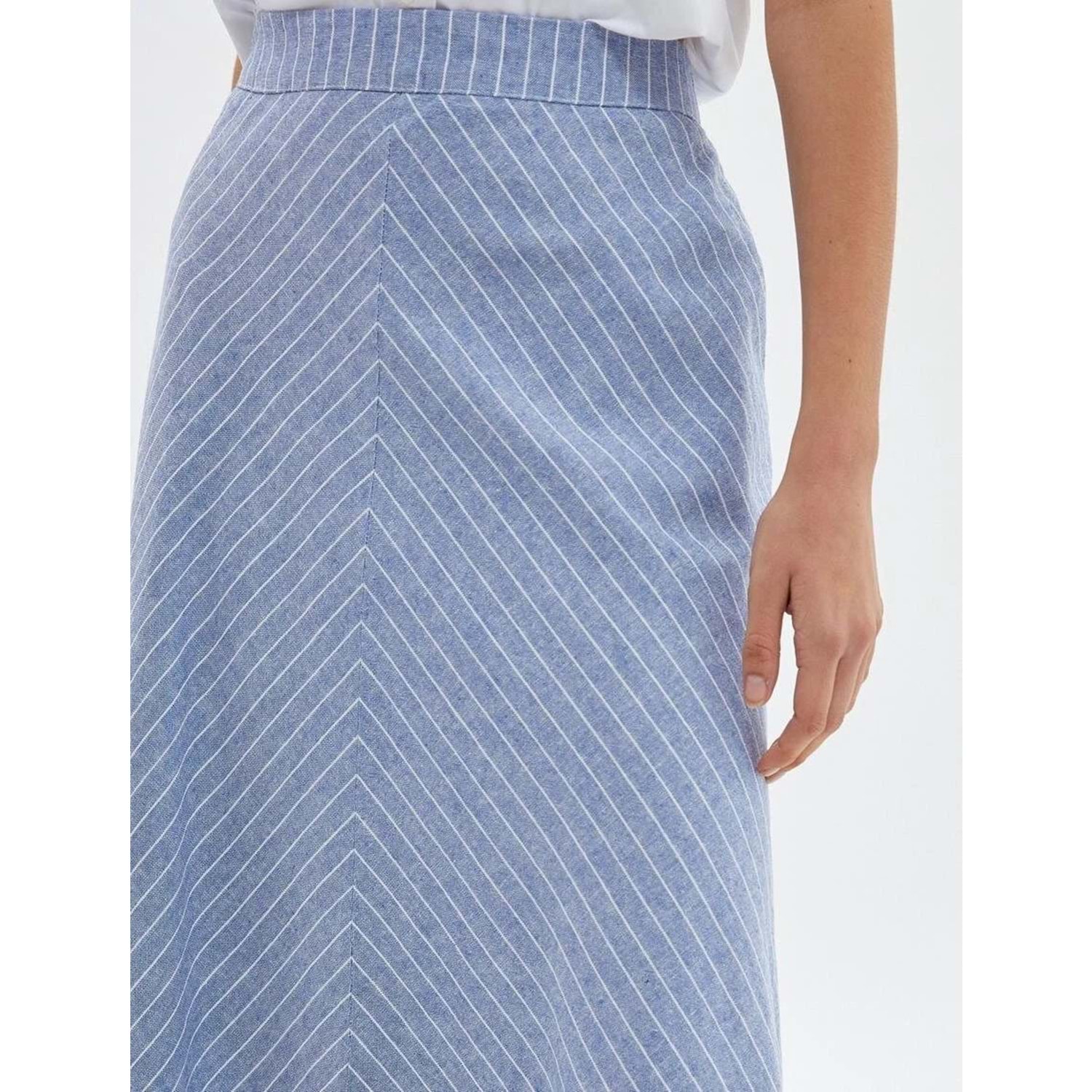 A Kesim Midi Etek Normal Bel - KOTON - 4SAK70002EW - MAVİ ÇİZGİLİ - 34
