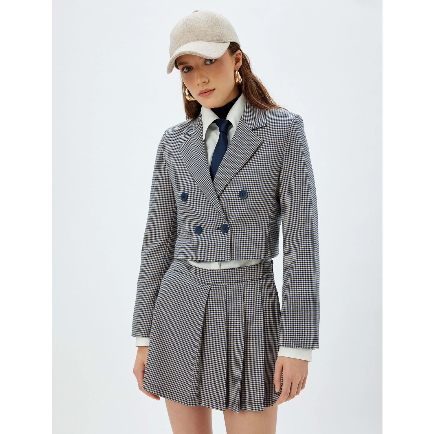 Kadın Giyim Koton X Sima Tarkan - Standart Bel Pileli Mini Şort Etek - KOTON - 5WAK40138PW - MAVİ EKOSE - 38