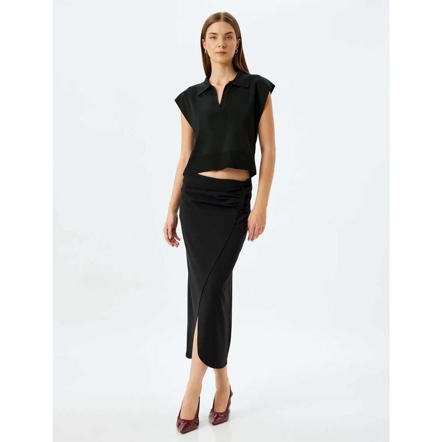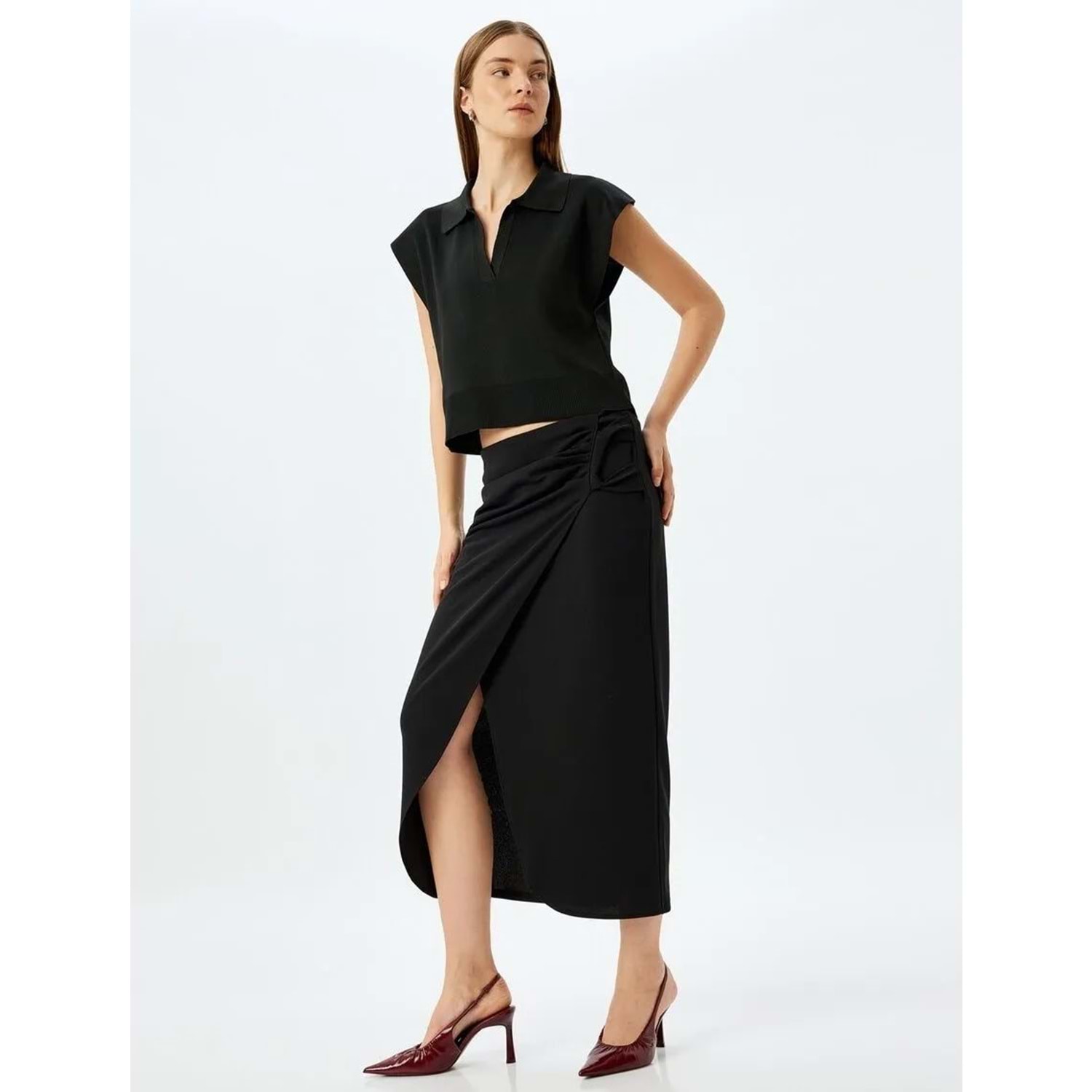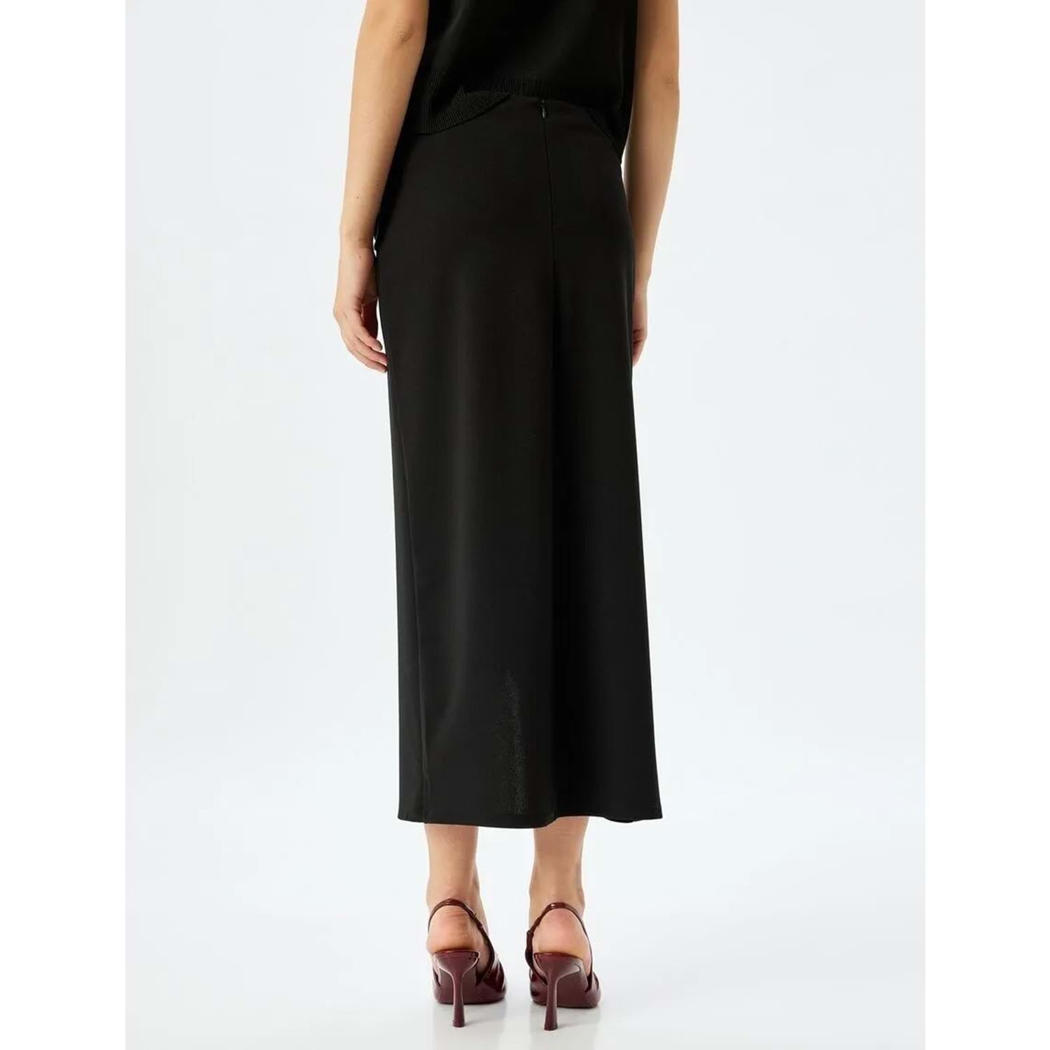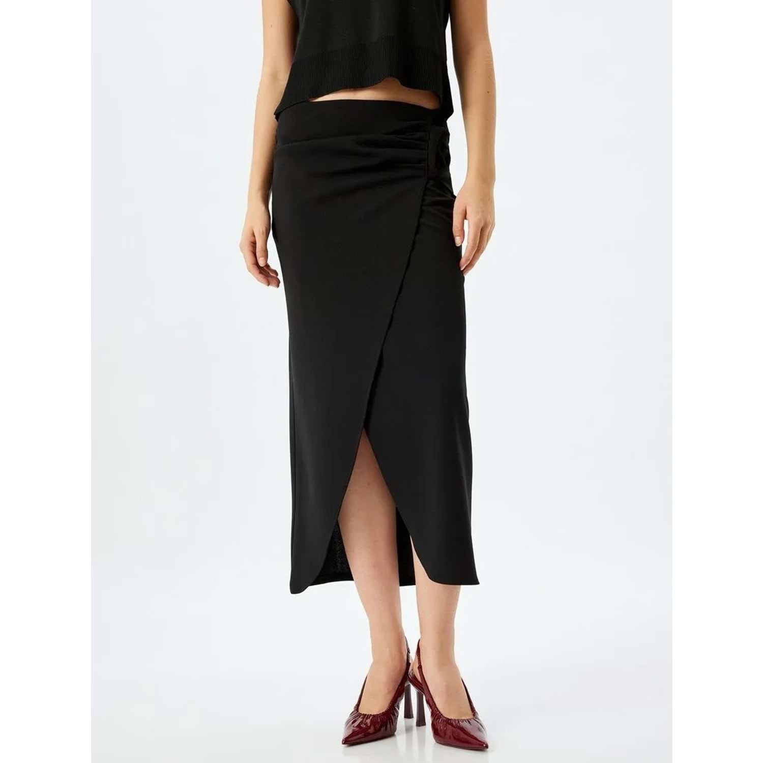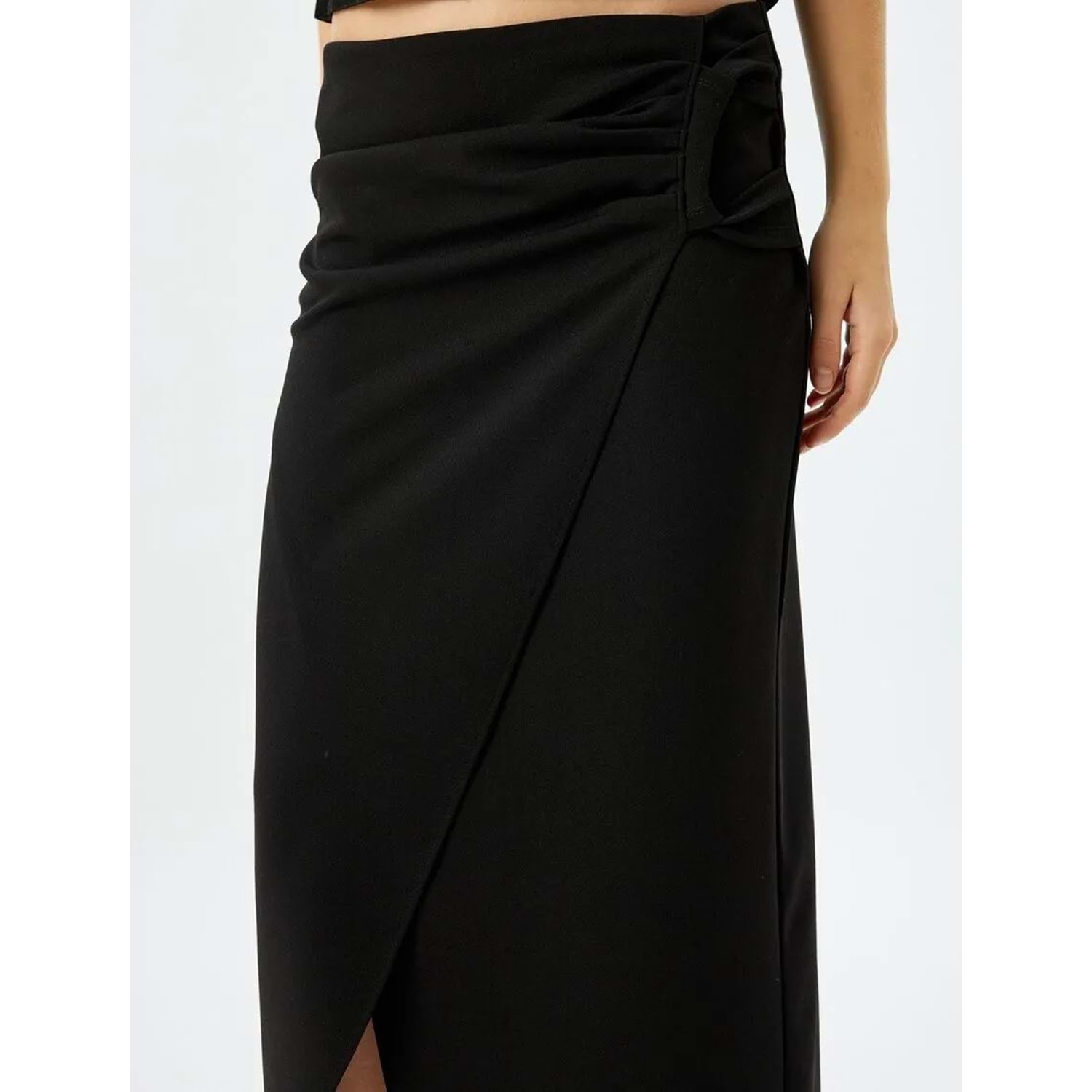 Midi Boy Asimetrik Kruvaze Etek 5SAK10037EK - KOTON - SİYAH - S
