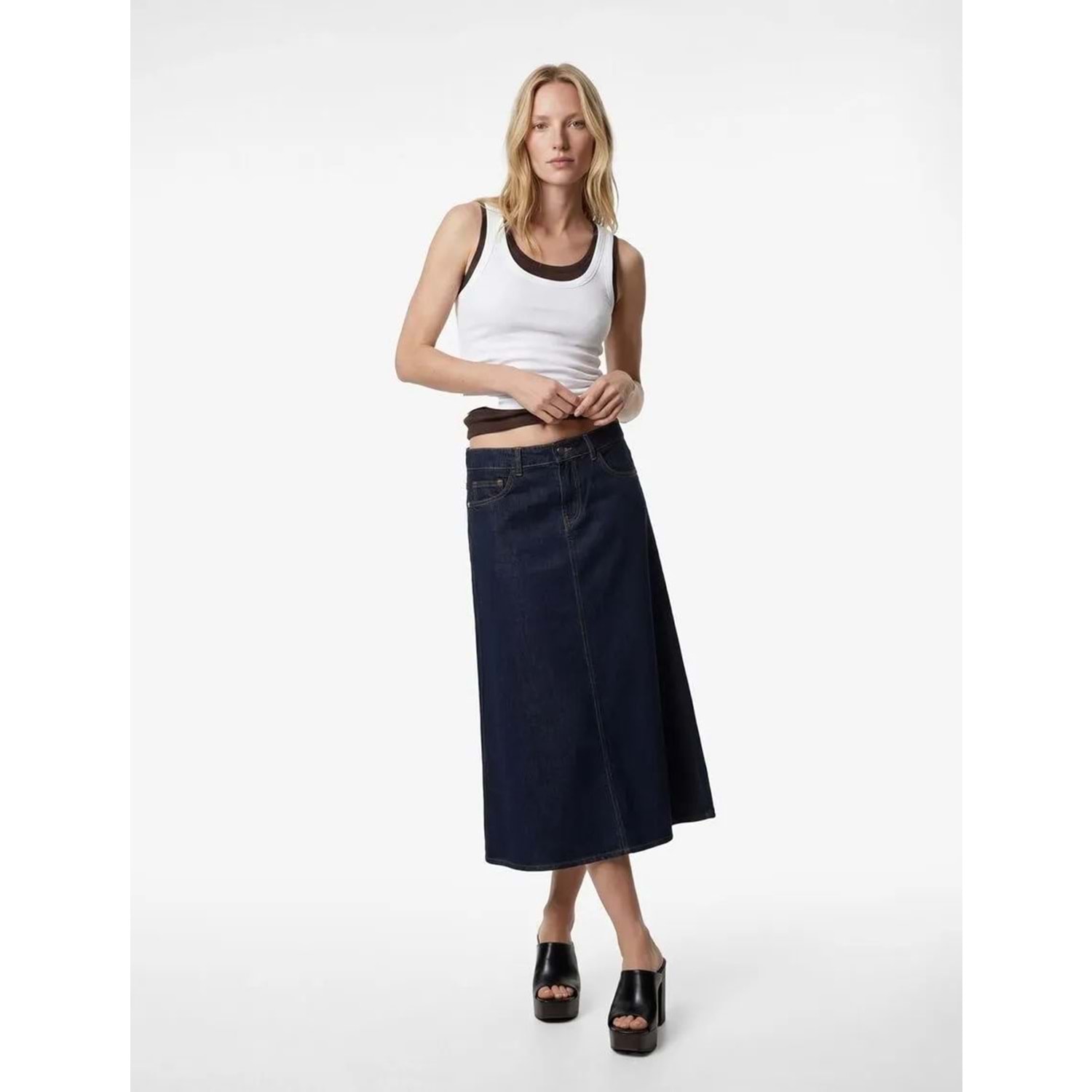 Pamuklu Düğmeli Volanlı Uzun Denim Etek - KOTON - 6SAL70004MD - KOYU İNDİGO - 38