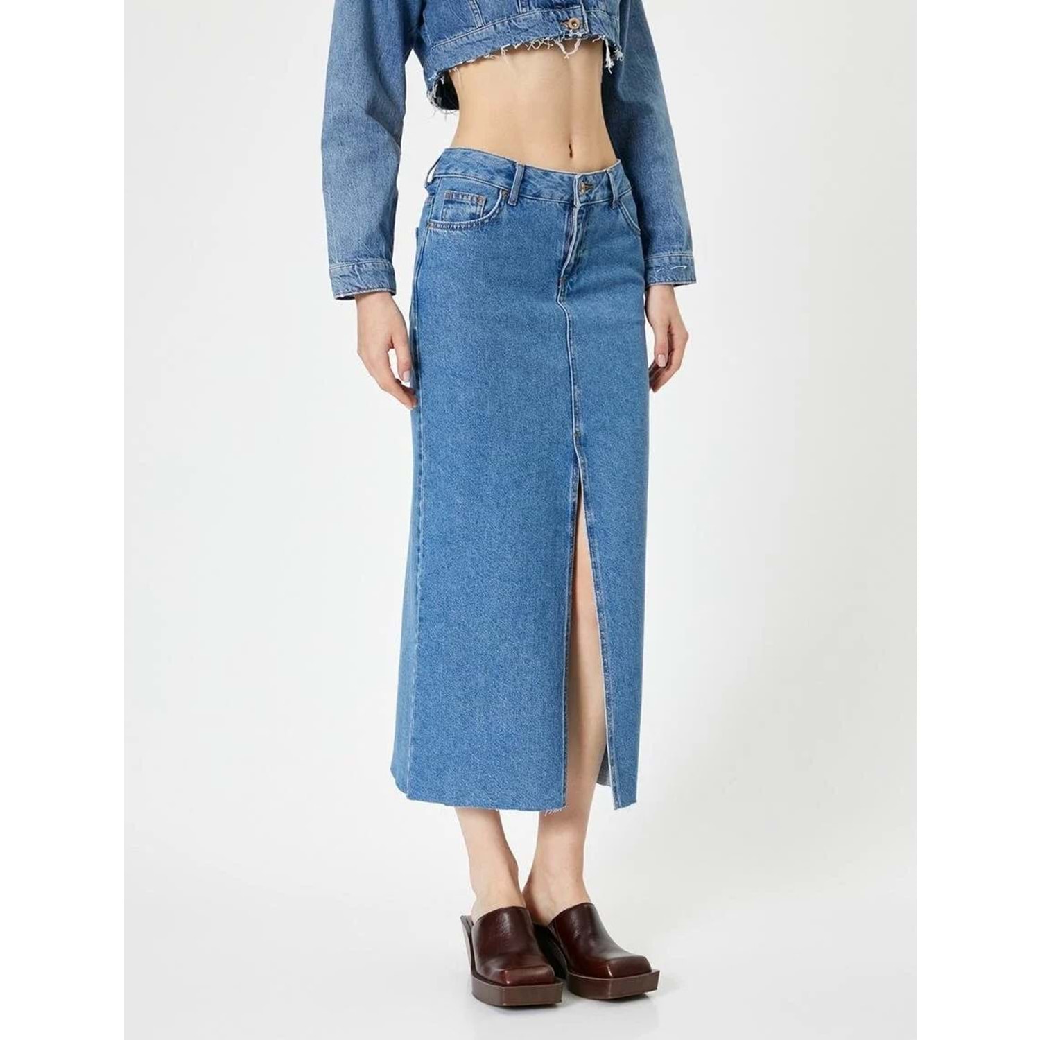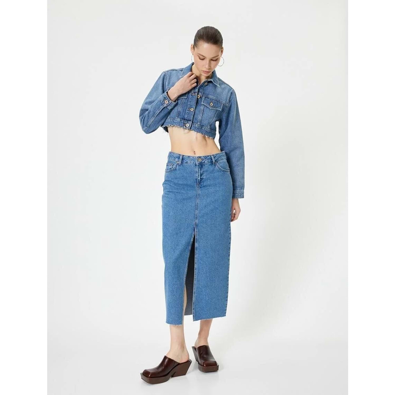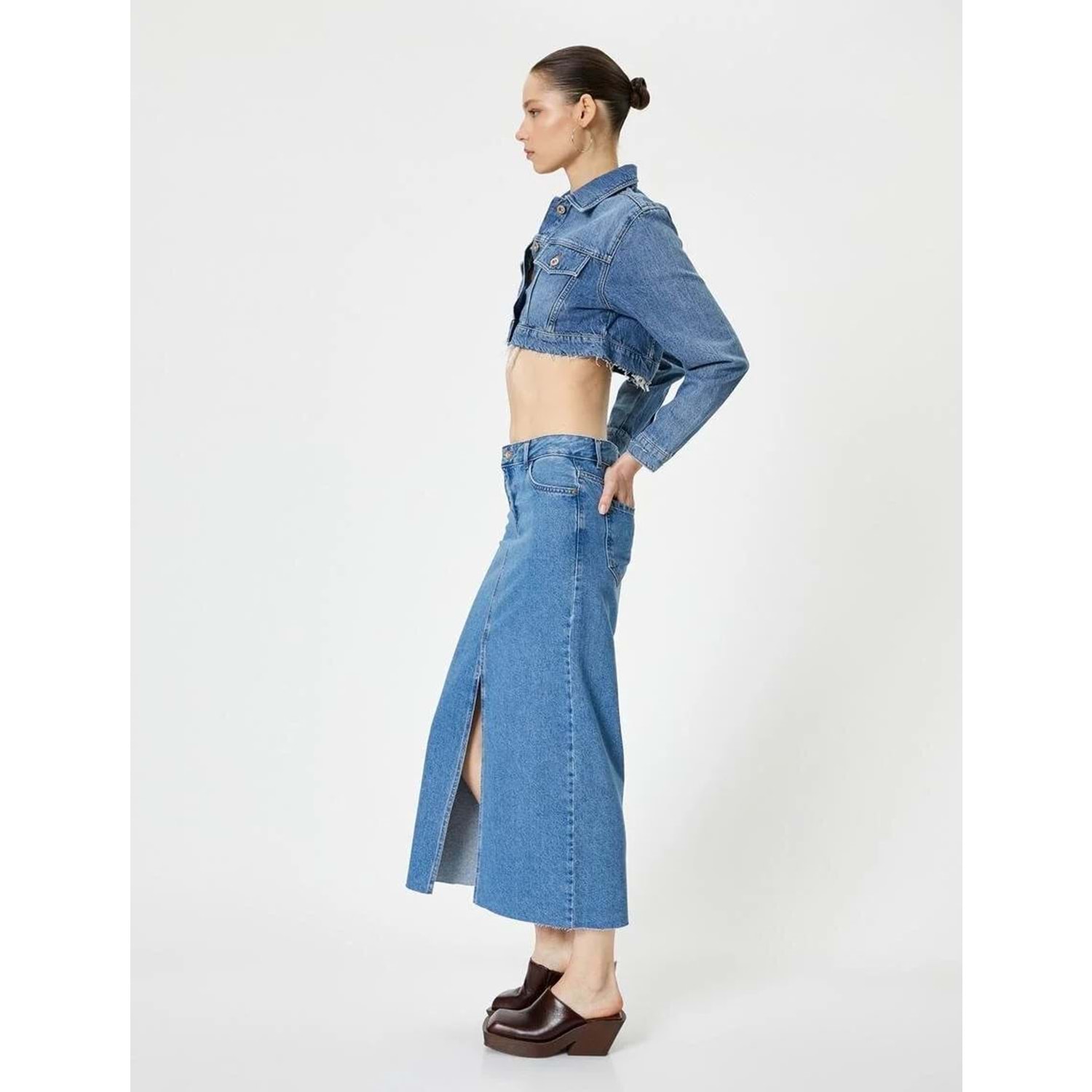 Uzun Kot Etek Önden Yırtmaç Detaylı Yüksek Bel Cepli Rahat Kalıp - 4SAL70002MD - 36
