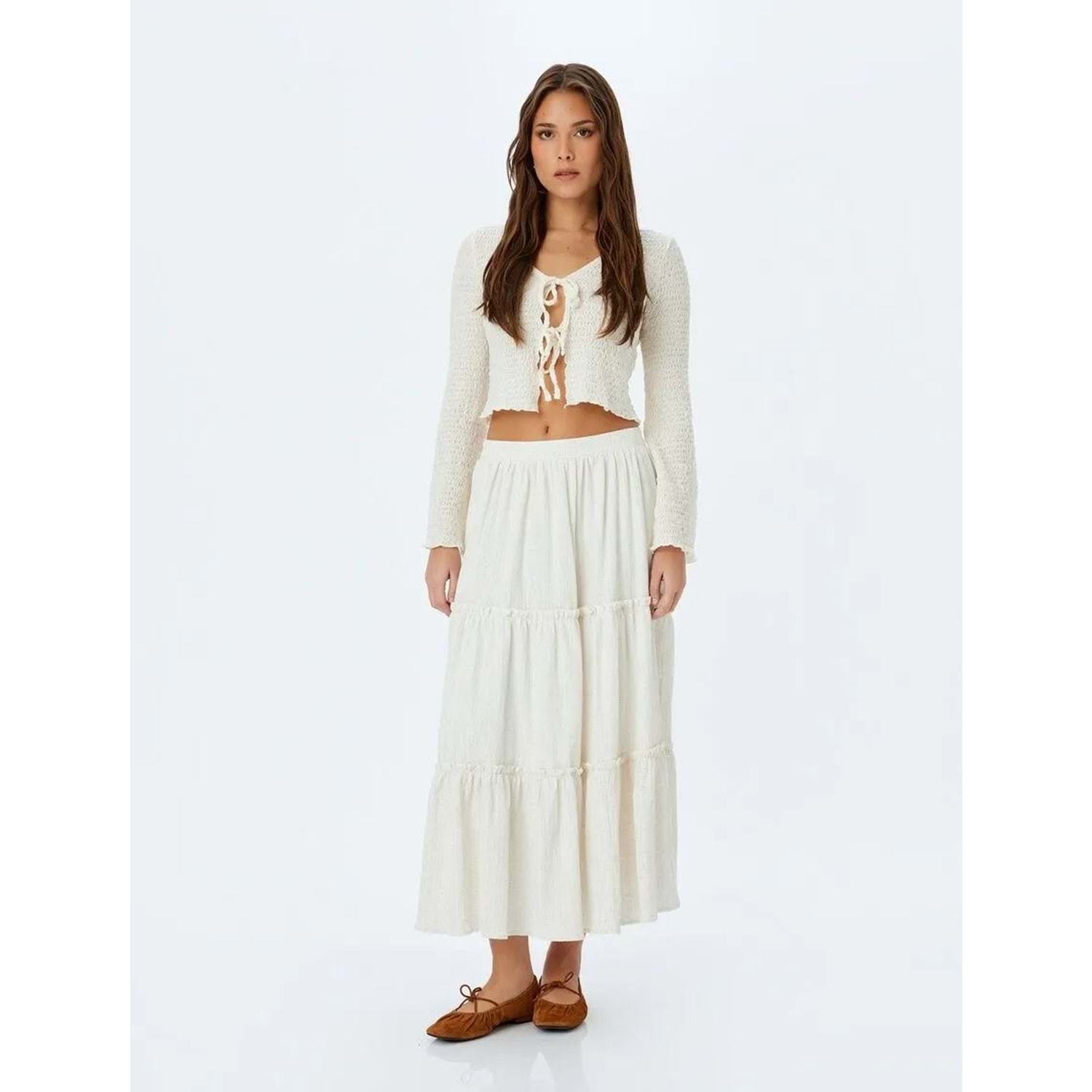 Yüksek Bel Uzun Etek 5SAK70047UW - KOTON - BEJ - 42