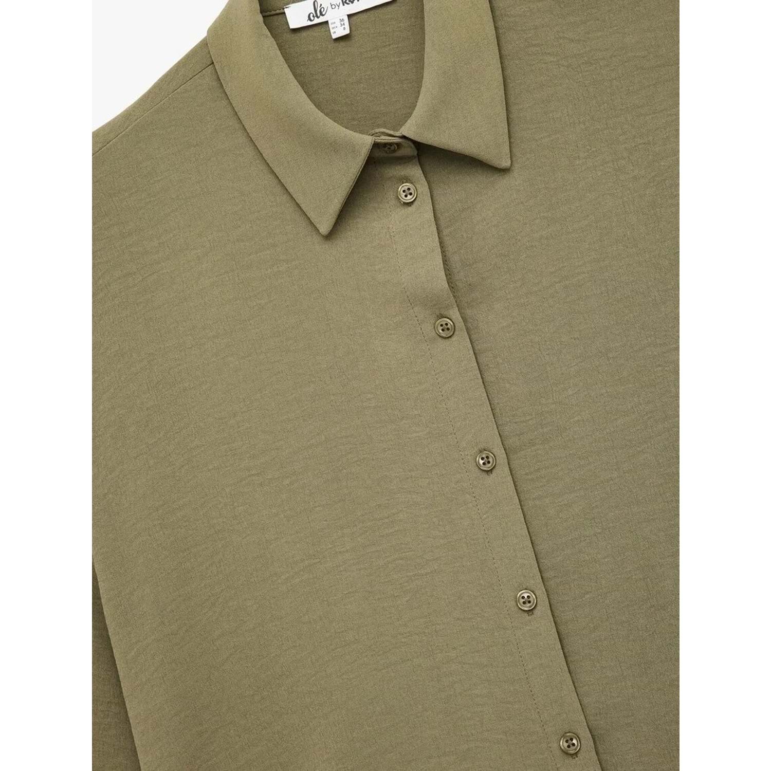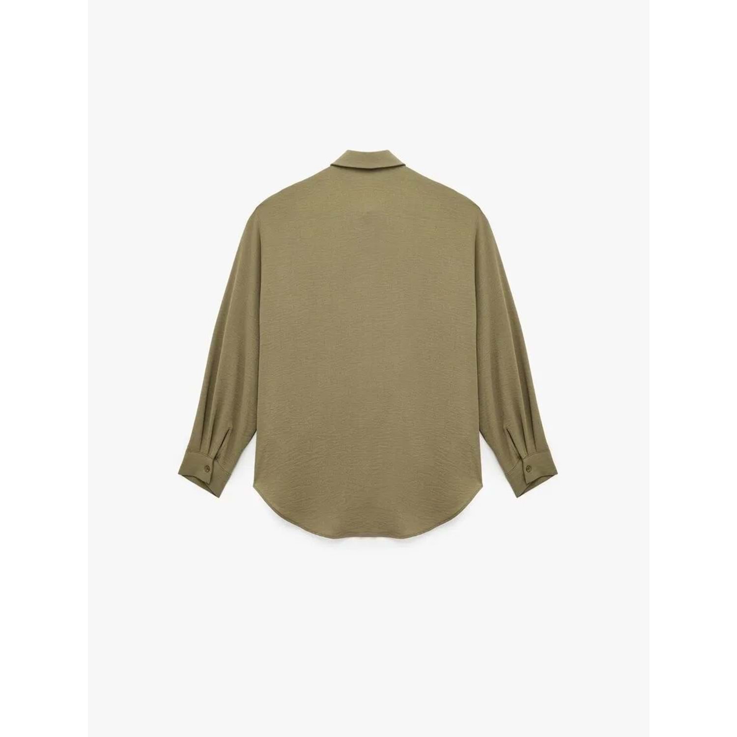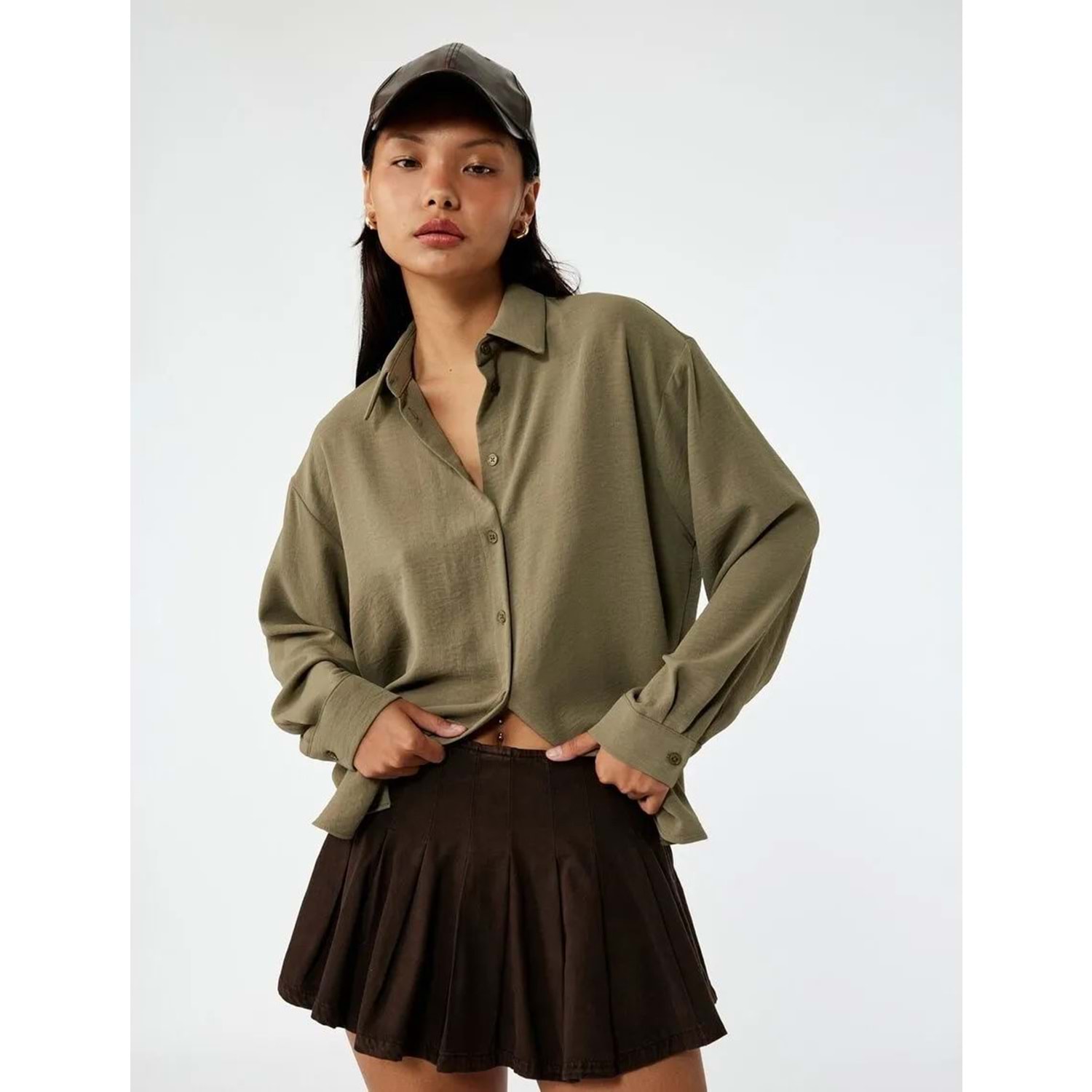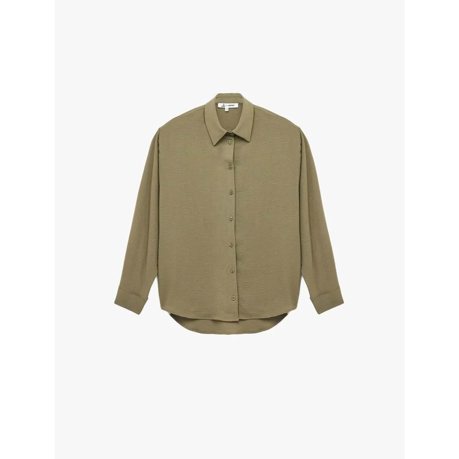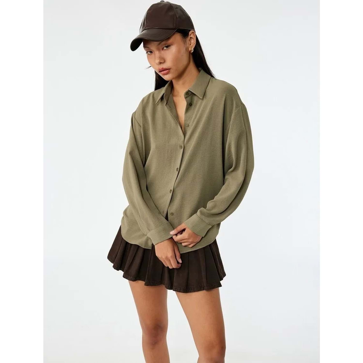Kadın Giyim Aerobin Kumaş Düğmeli Klasik Yaka Uzun Kollu Oversize Gömlek - KOTON - 6WAL60004IW - HAKİ - 34