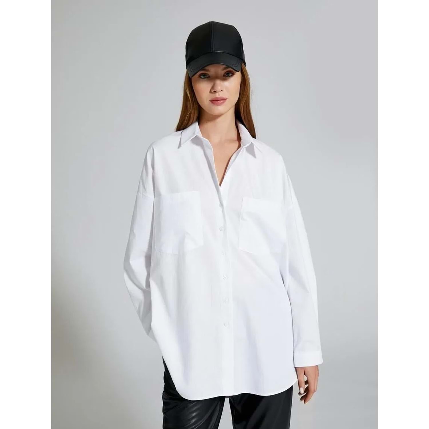 Oversize Gömlek Uzun Kollu Çift Cepli Düğmeli Pamuklu - KOTON - 4WAL60064IW - BEYAZ - 36