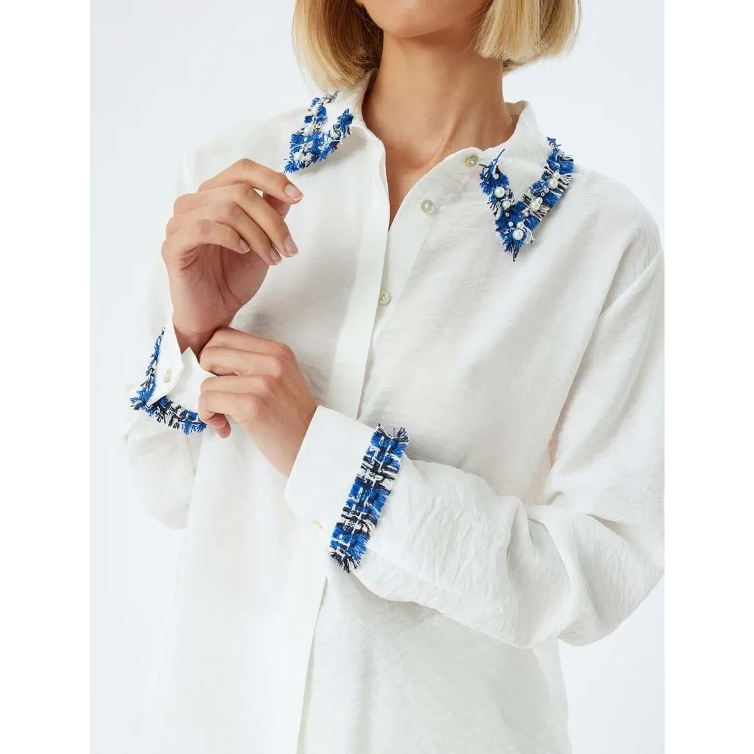 Viskon Gömlek Renk Kontrastlı Uzun Kollu TENCEL™ Kumaş - KOTON - 5WAK60056PW - KIRIK BEYAZ - 34