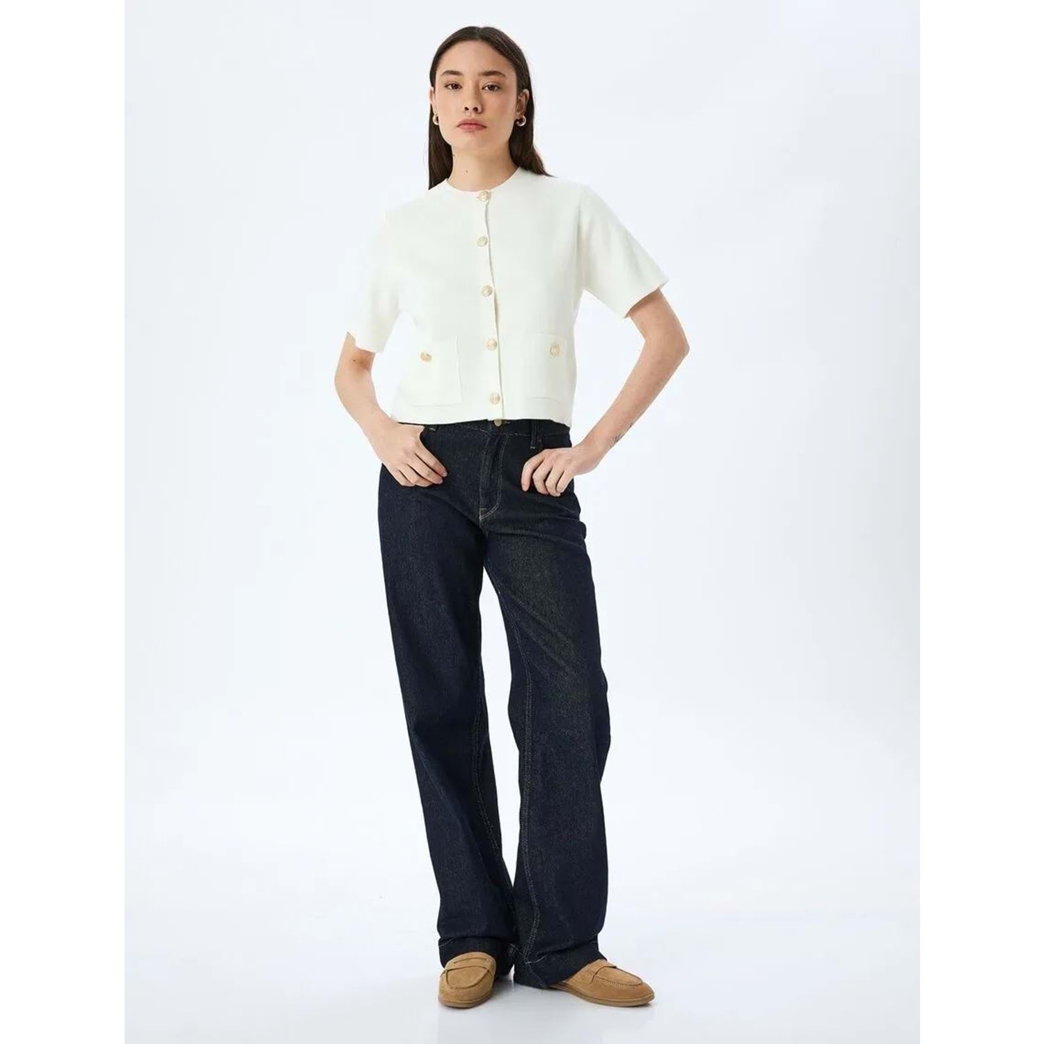 Cep Detaylı Düğmeli Triko Hırka 5SAL90008HT - KOTON - EKRU - M